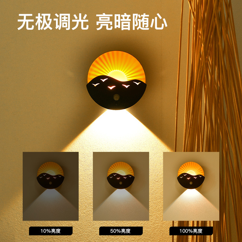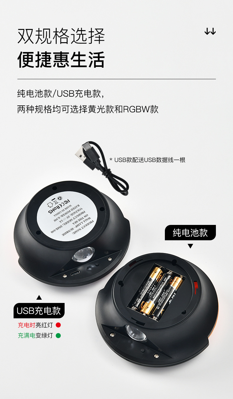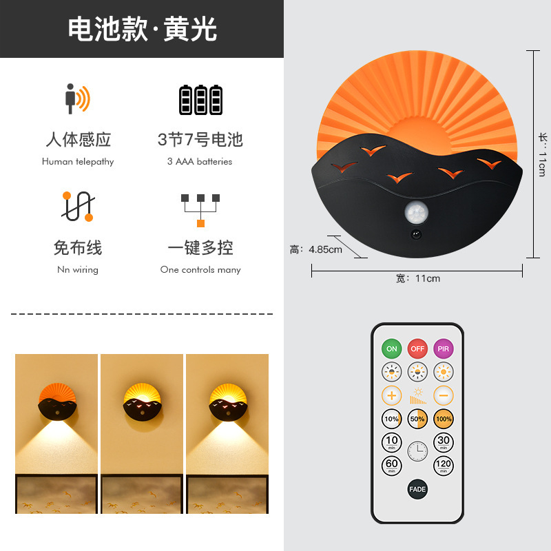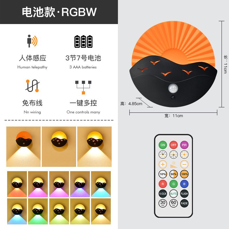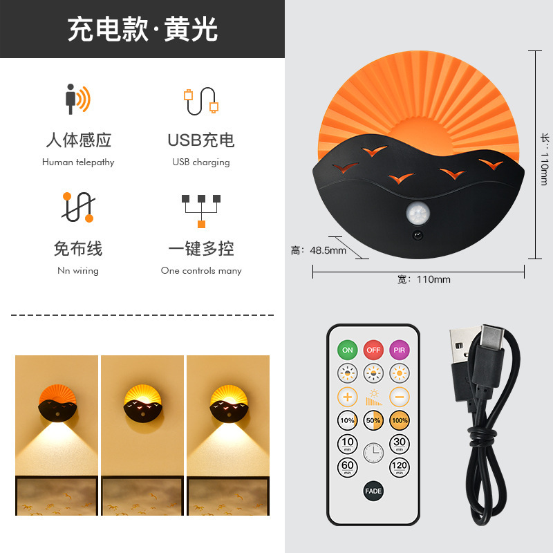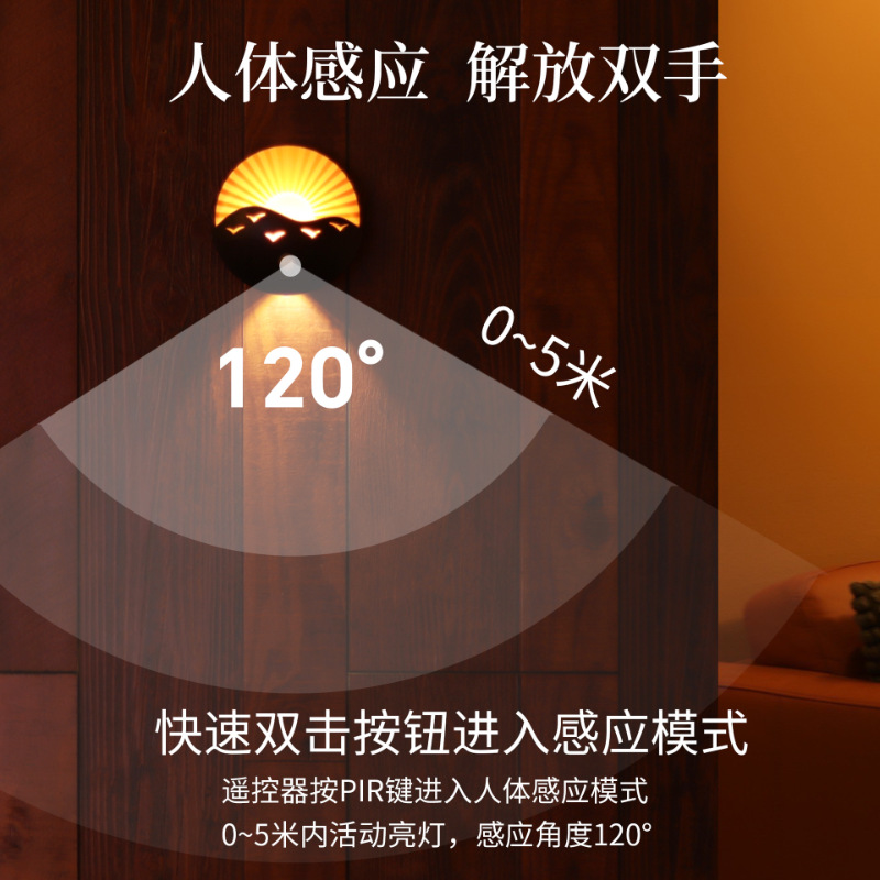 跨境创意遥控小夜灯卧室床头氛围灯走廊楼梯感应灯充电池款墙壁灯