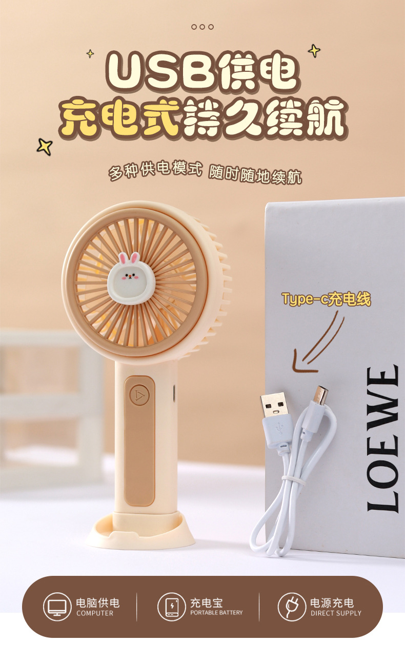 跨境卡通桌面手持小风扇办公室充电USB风扇学生便携式迷你电风扇