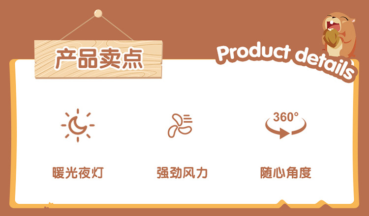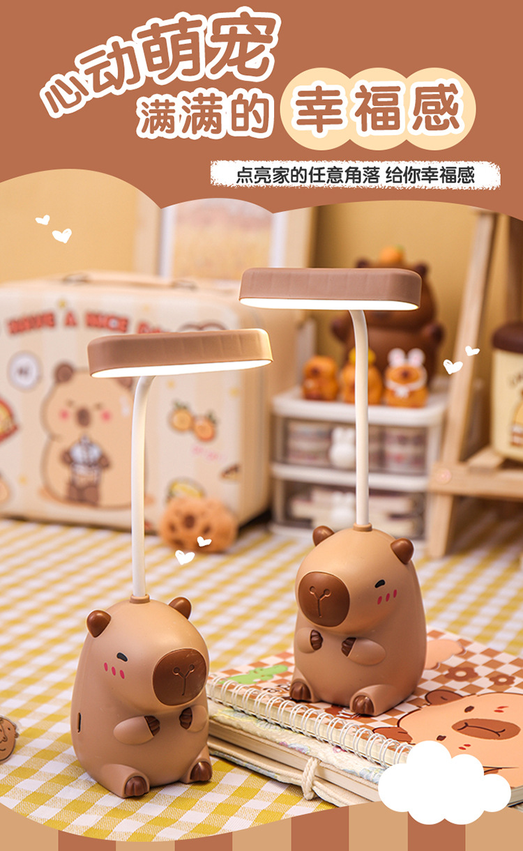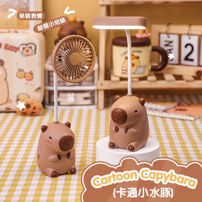 可爱卡皮巴拉桌面迷你小风扇儿童礼物便携usb充电小台灯跨境新款