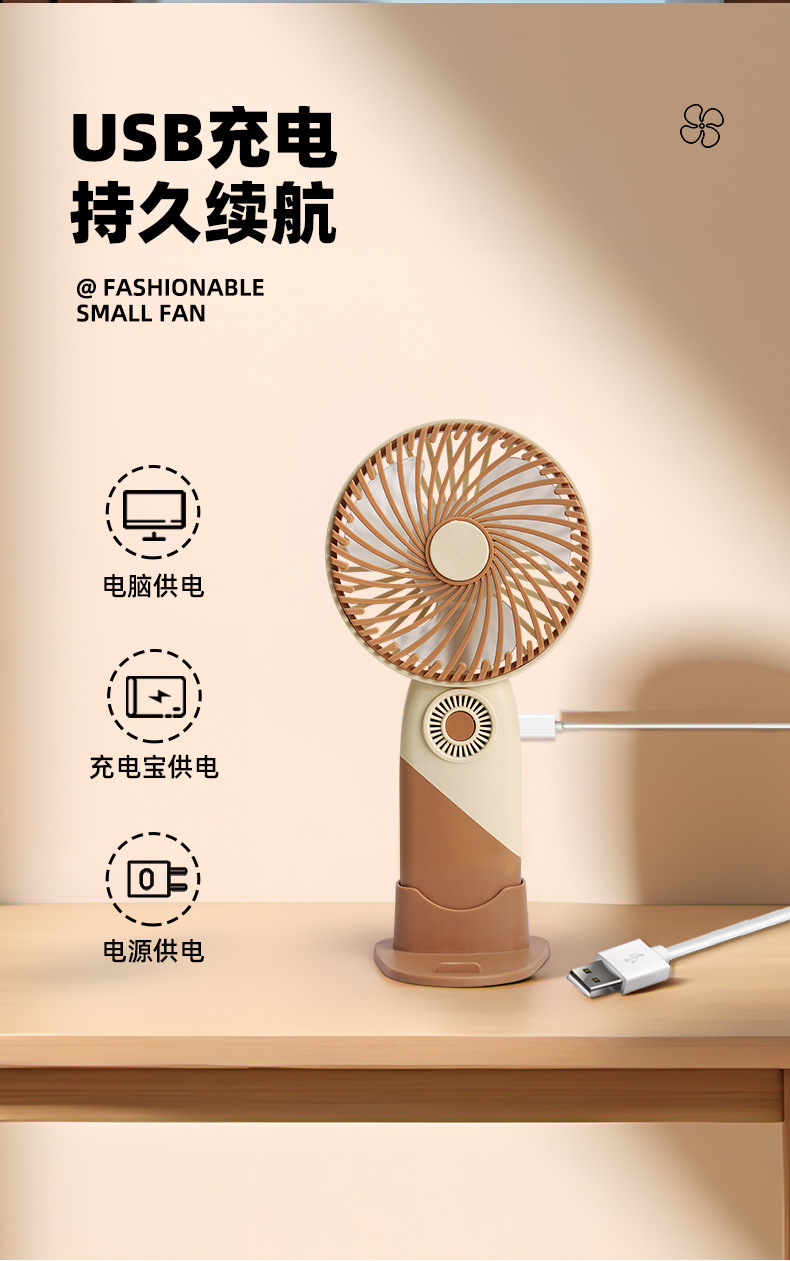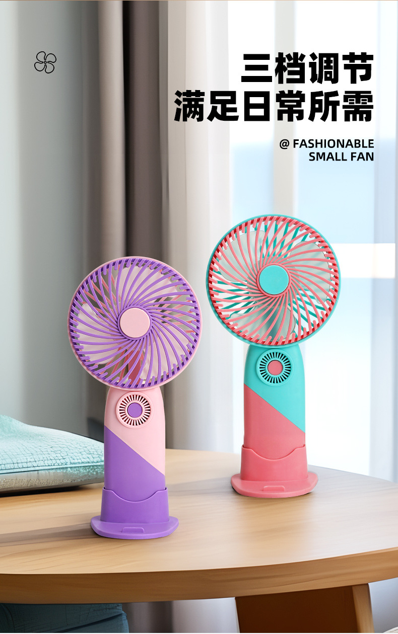 新款马卡龙手持小风扇带底座桌面usb风扇礼品学生便携迷你电风扇