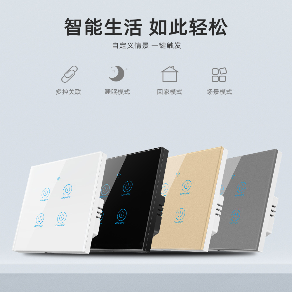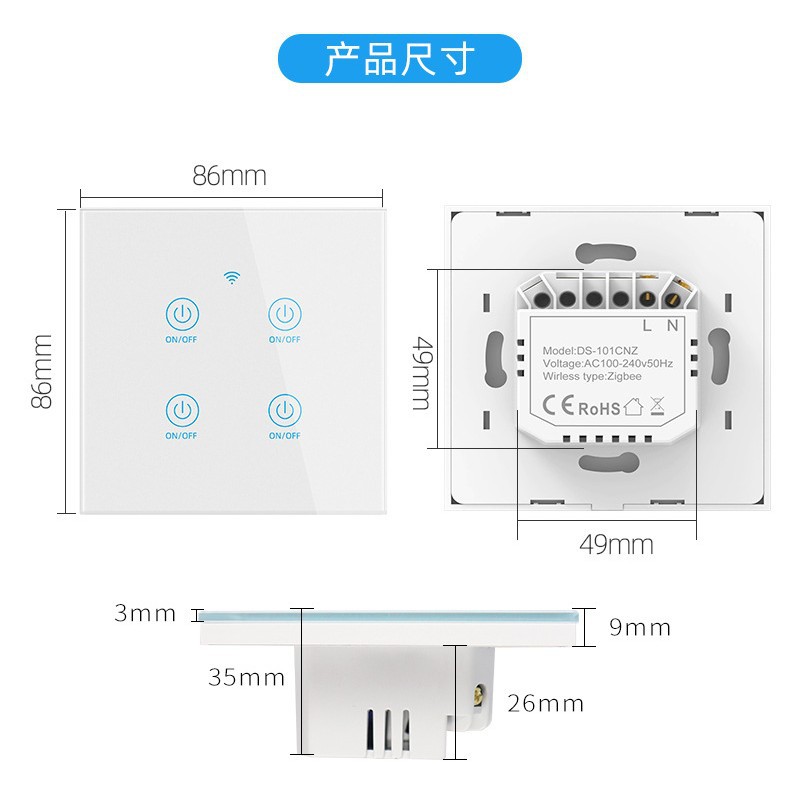 Zigbee情景开关涂鸦智能APP远程控制定时场景联动触摸开关4路零火