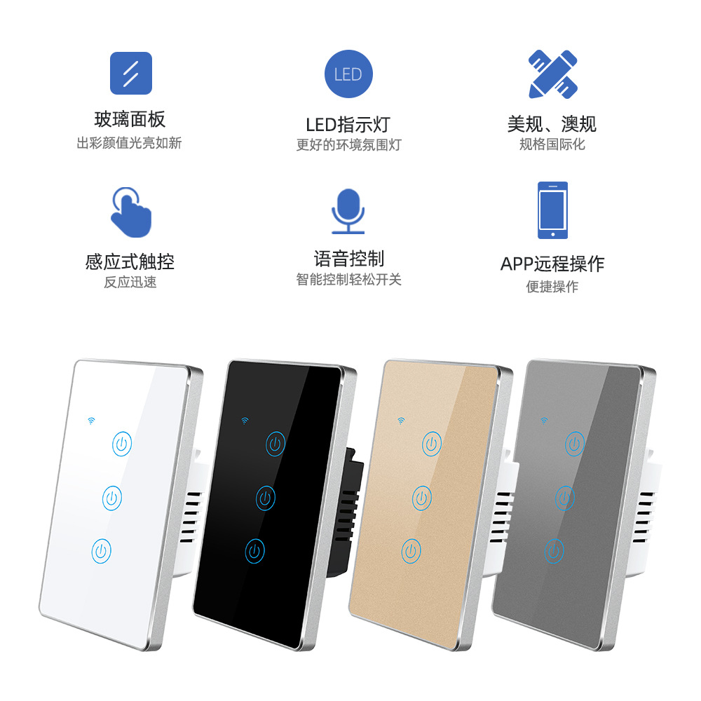 120型金属边框 美规智能开关 手机APP远程控制零火通用 wifi开关