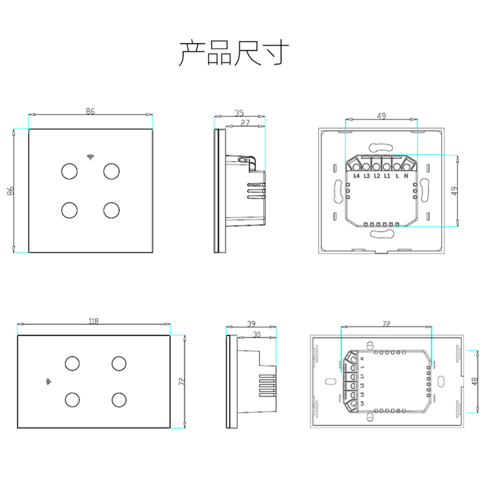 86欧规 120美规 触摸凹面wifi智能墙壁开关 alexa语音控制