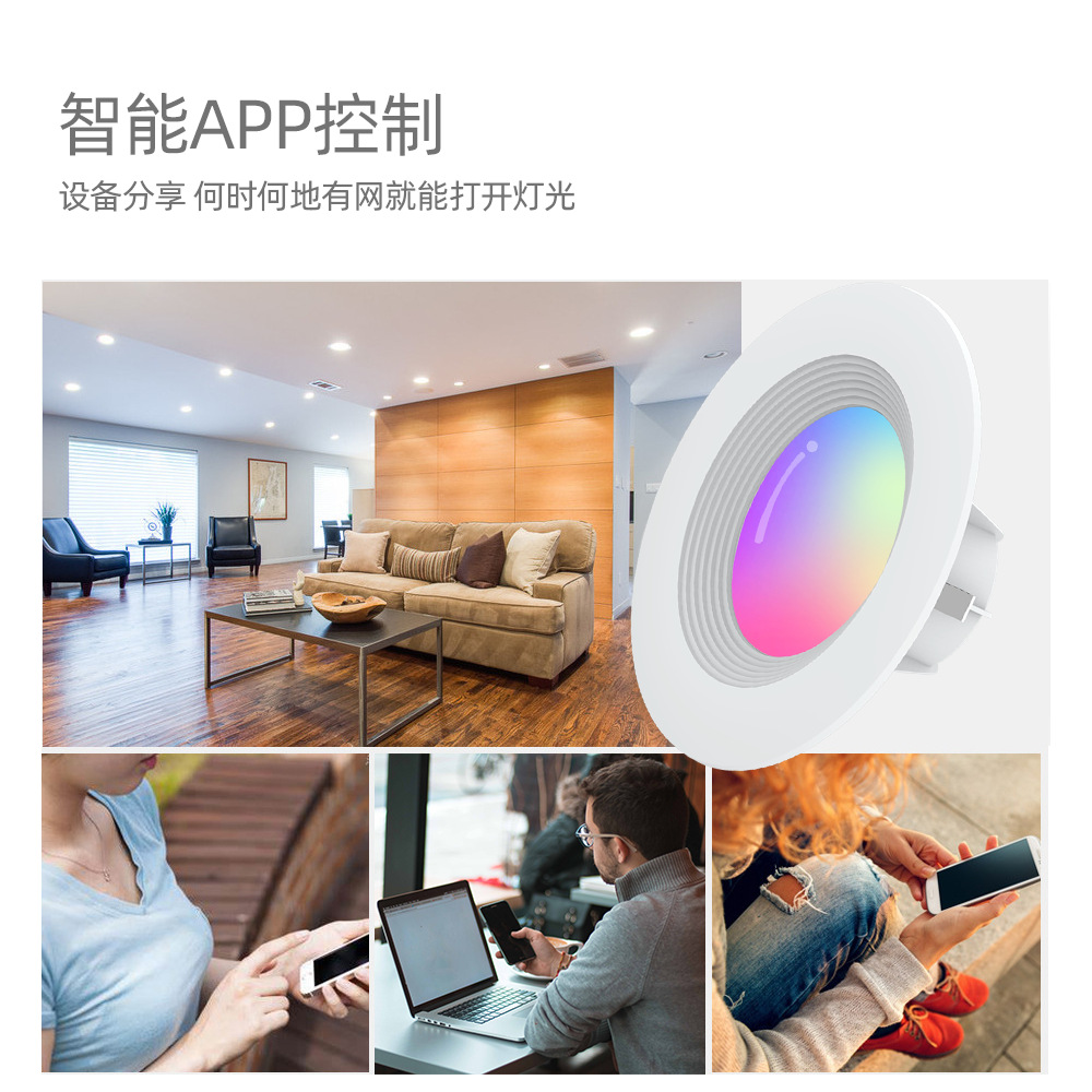跨境电商新品WiFi智能筒灯6寸调光调色手机APP控制RGB筒灯暗装13W