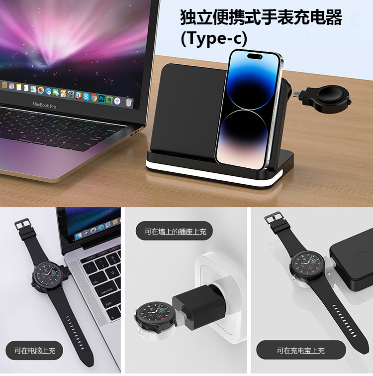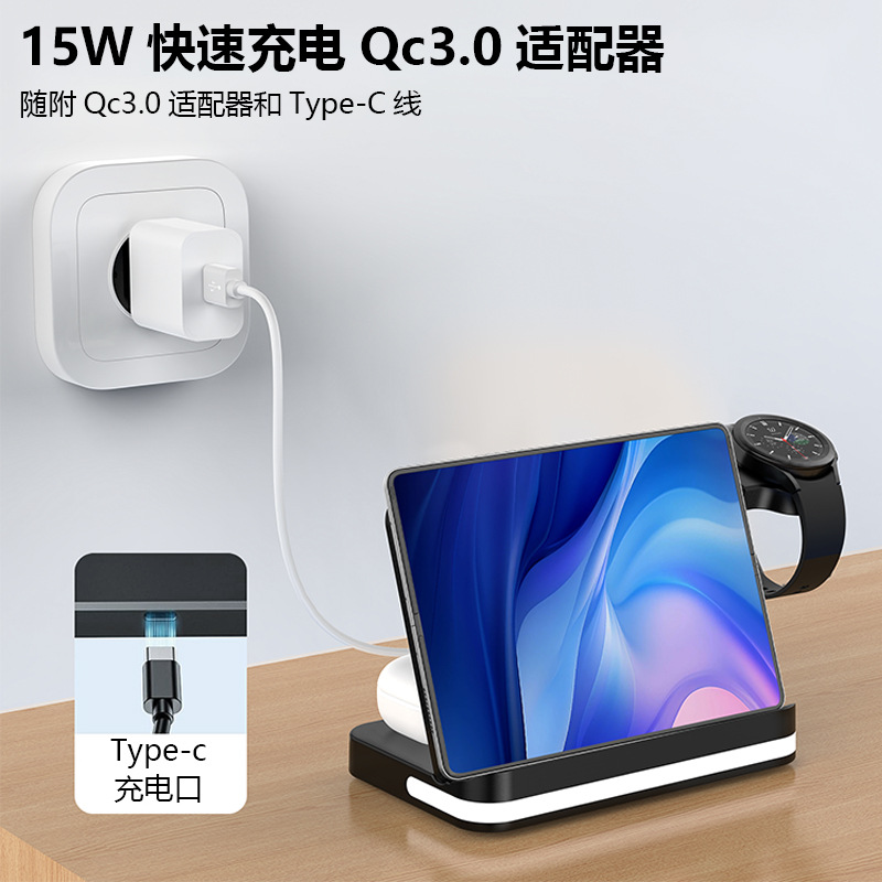 跨境新款适用于三星W2324折叠屏手机手表耳机三合一可折叠无线充