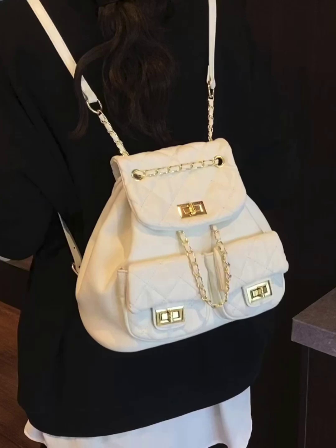 新款大容量菱格链条水桶包时尚百搭双肩背包潮流女包4134