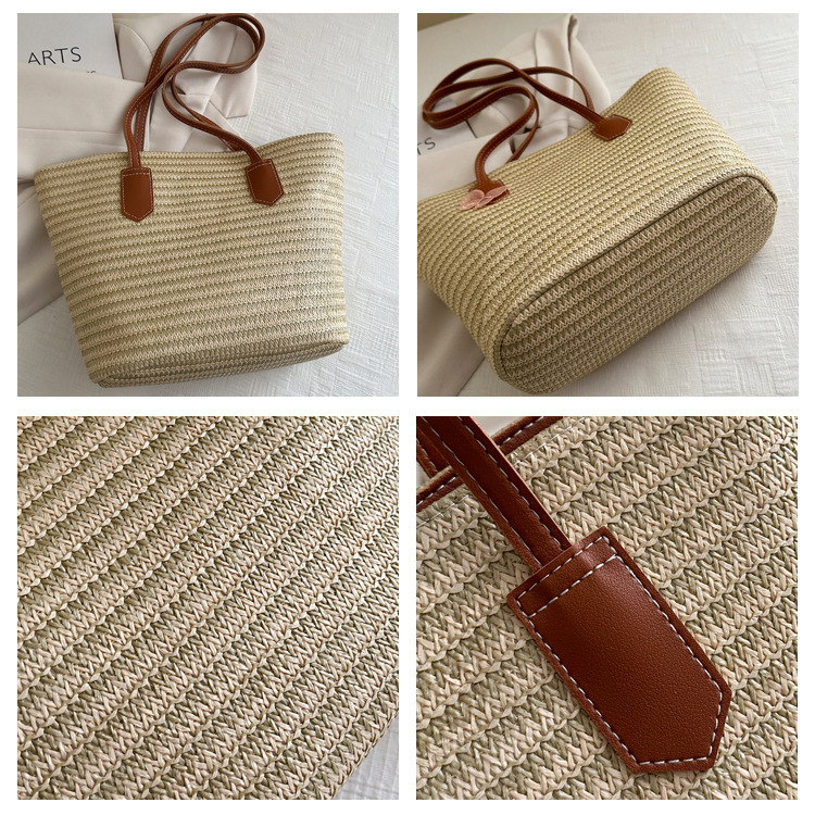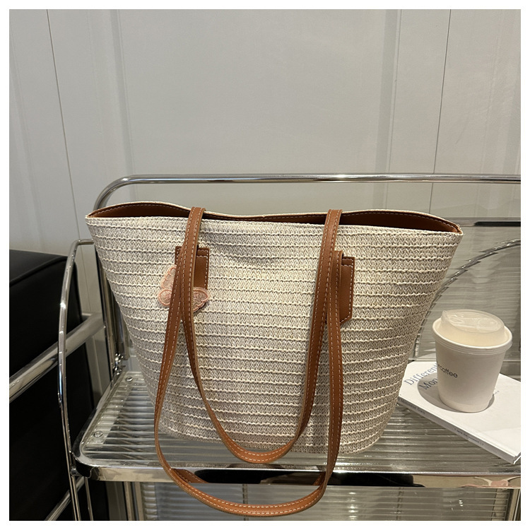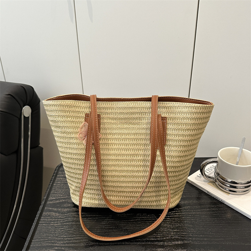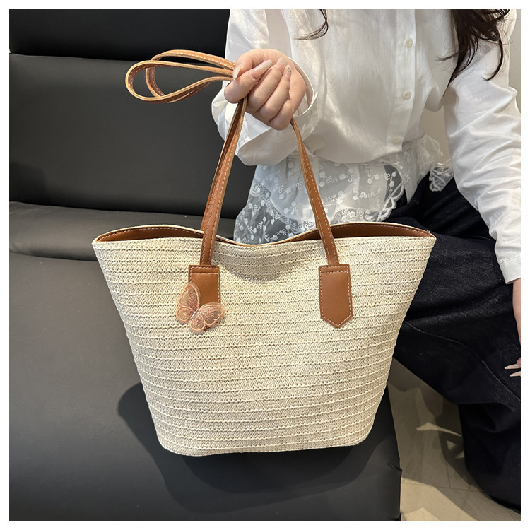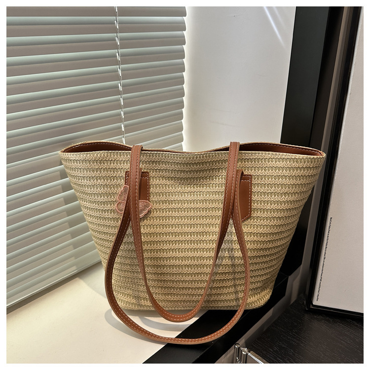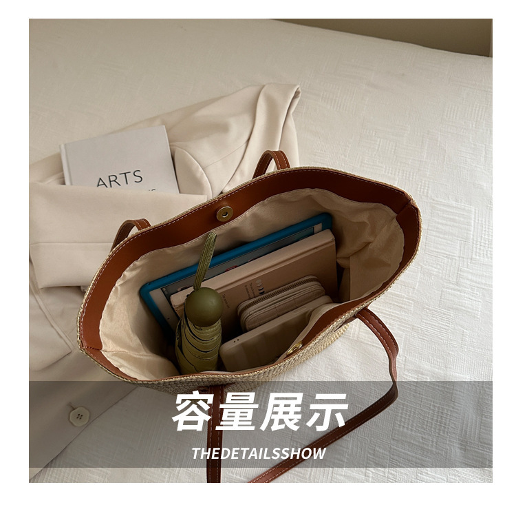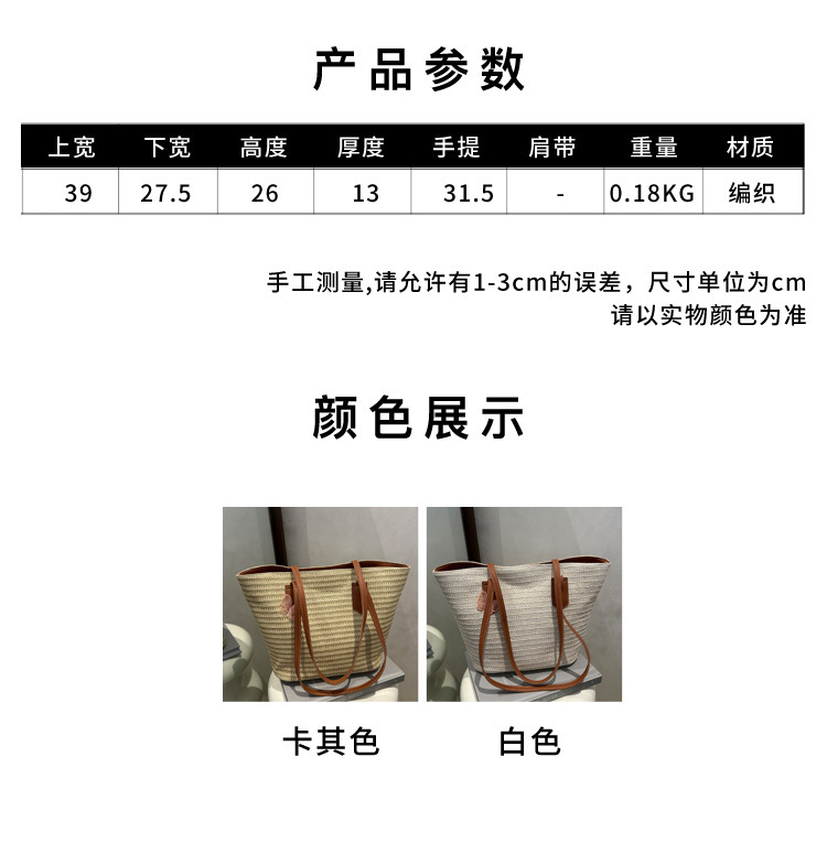 法式单肩斜挎编织包女款通勤托特包大容量度假沙滩包女款菜篮子