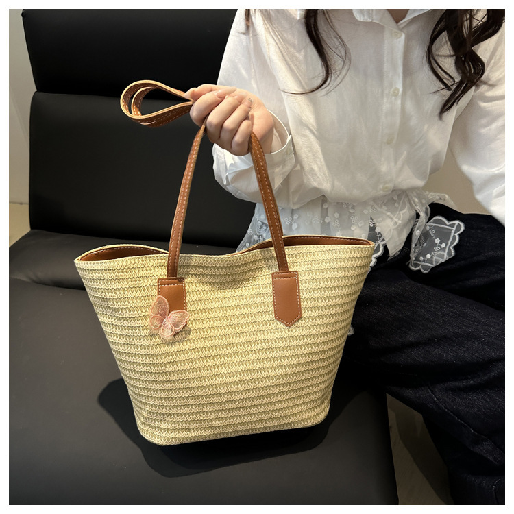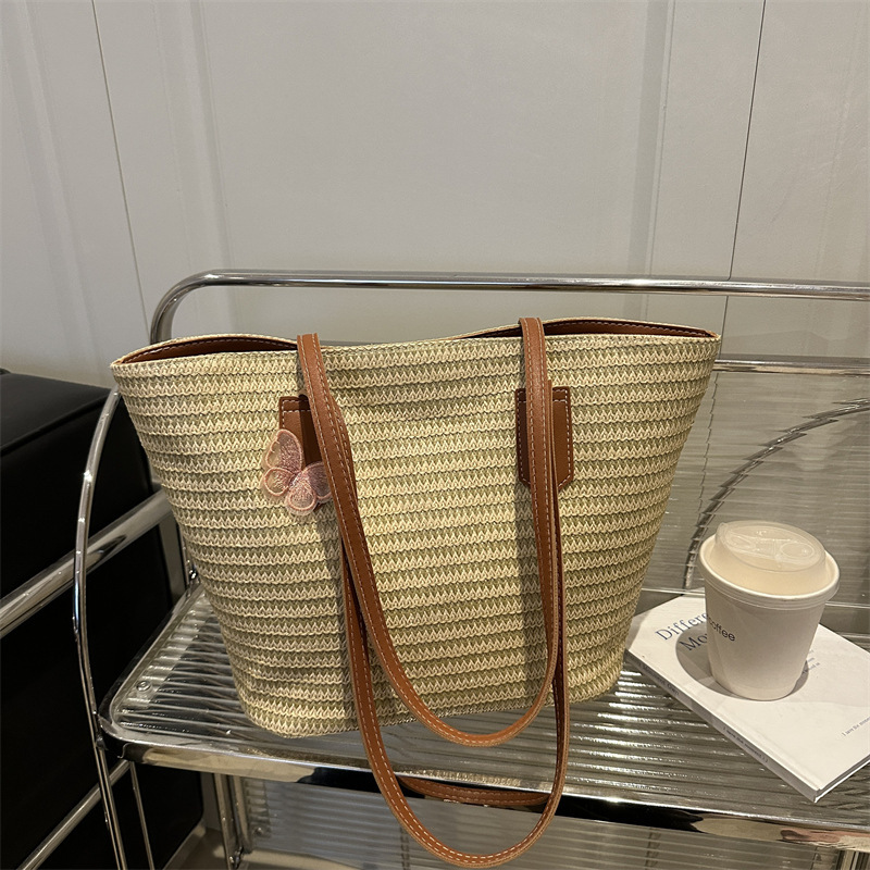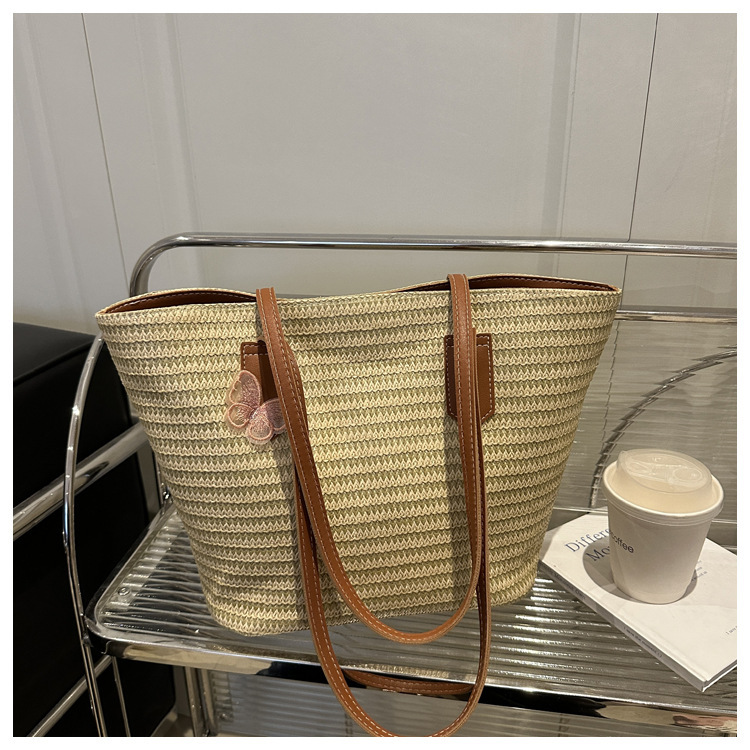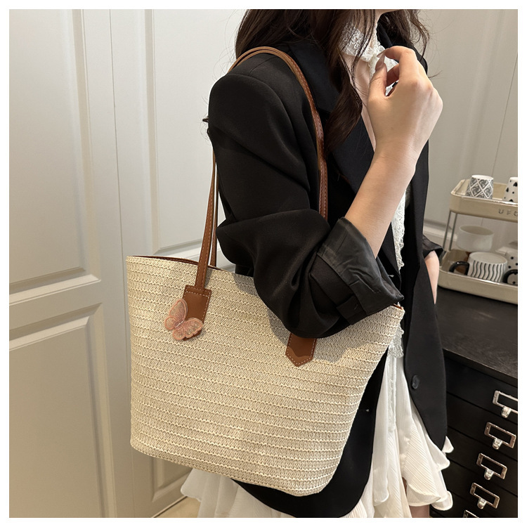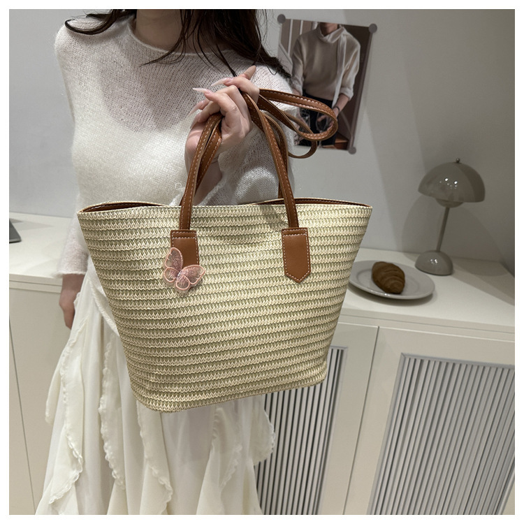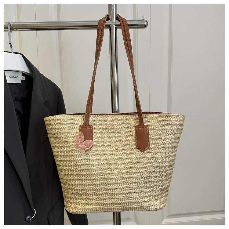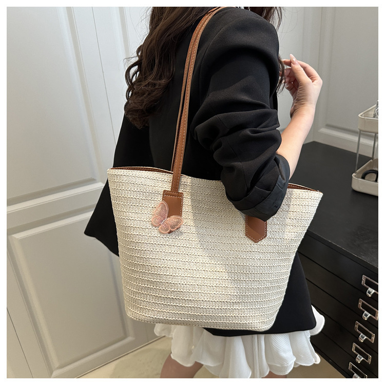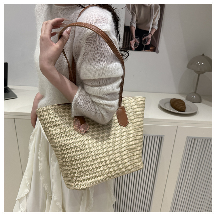 法式单肩斜挎编织包女款通勤托特包大容量度假沙滩包女款菜篮子