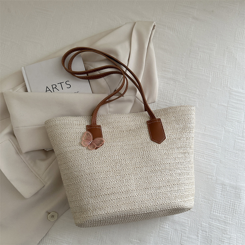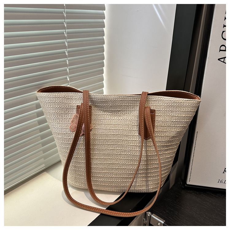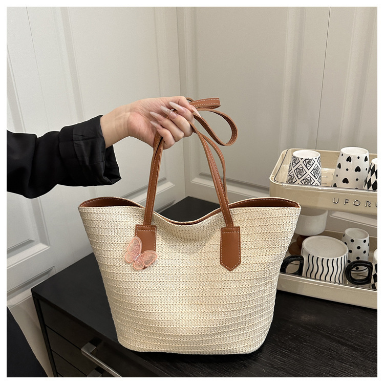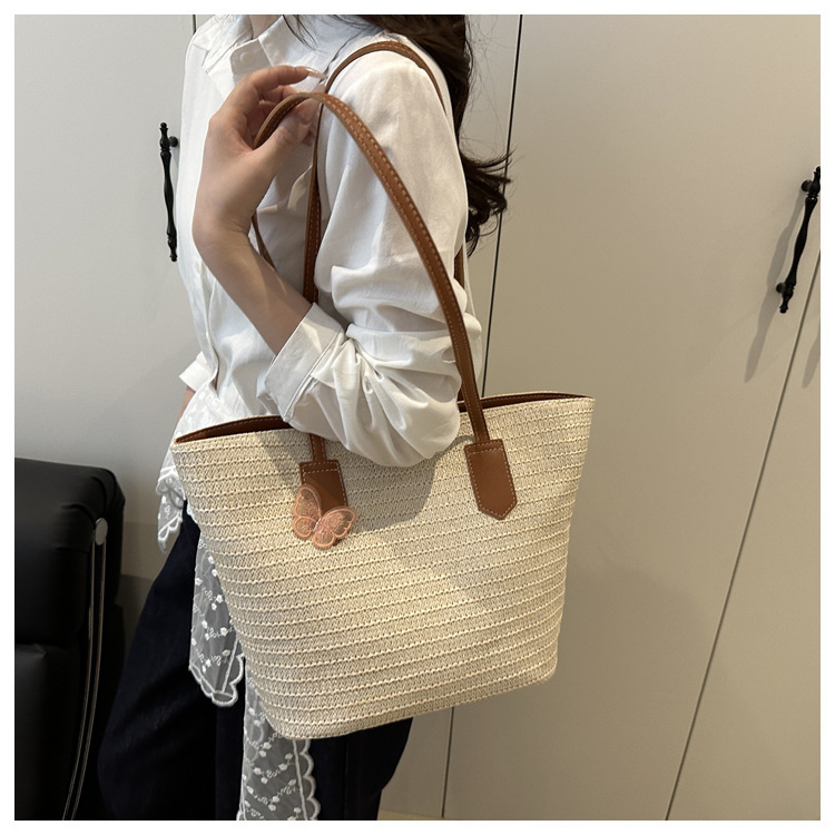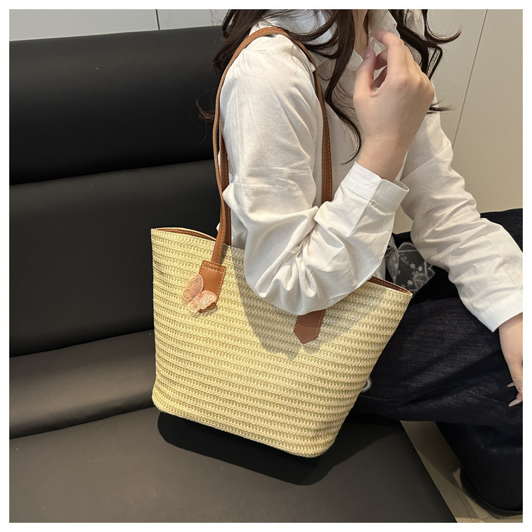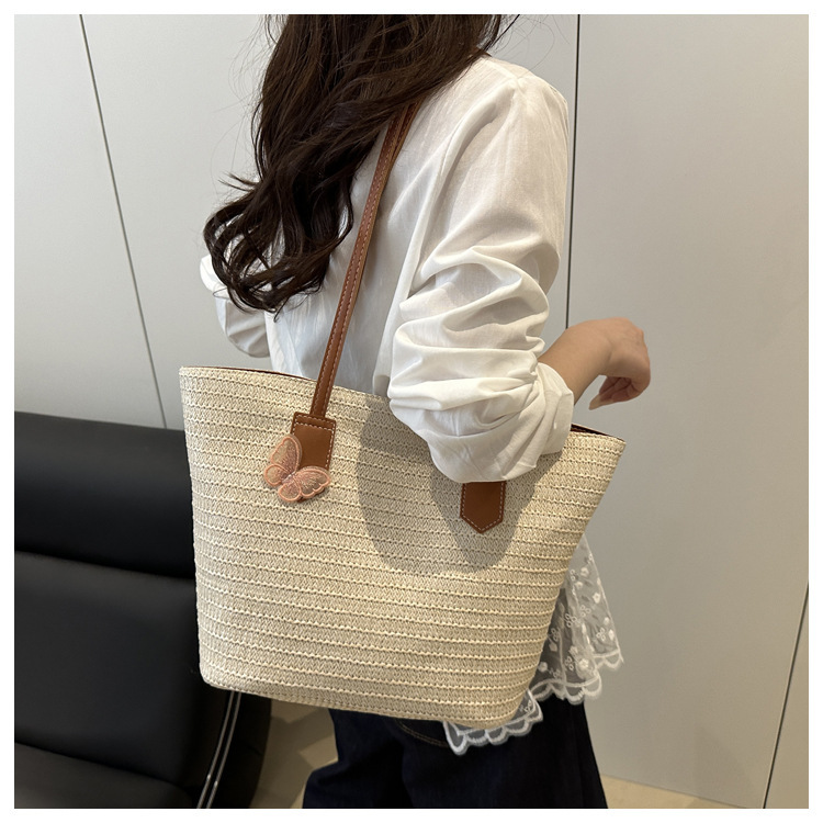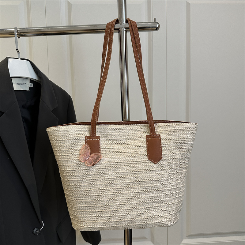 法式单肩斜挎编织包女款通勤托特包大容量度假沙滩包女款菜篮子