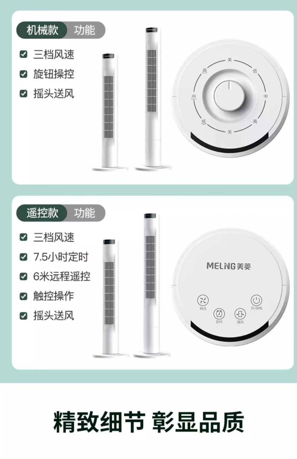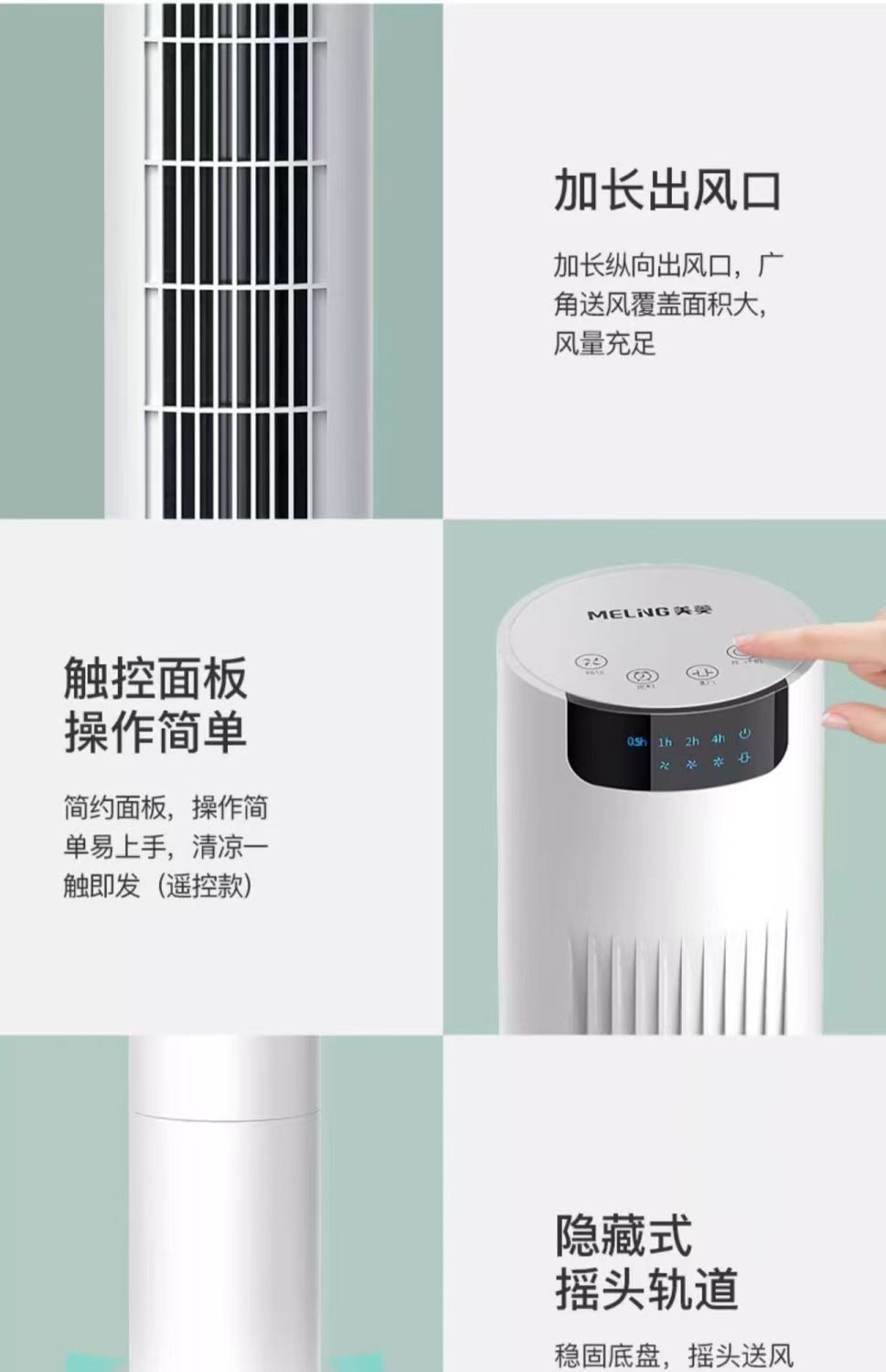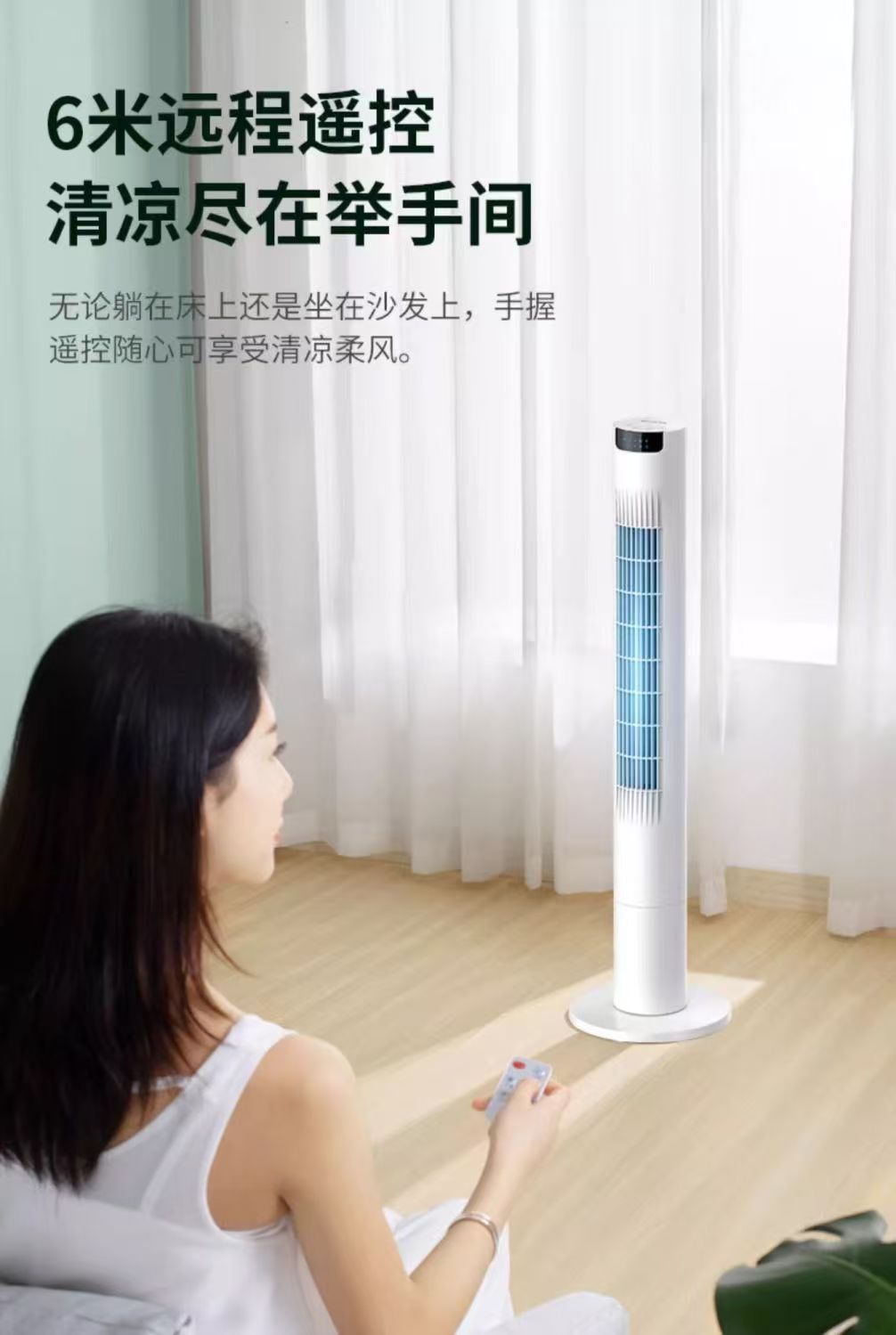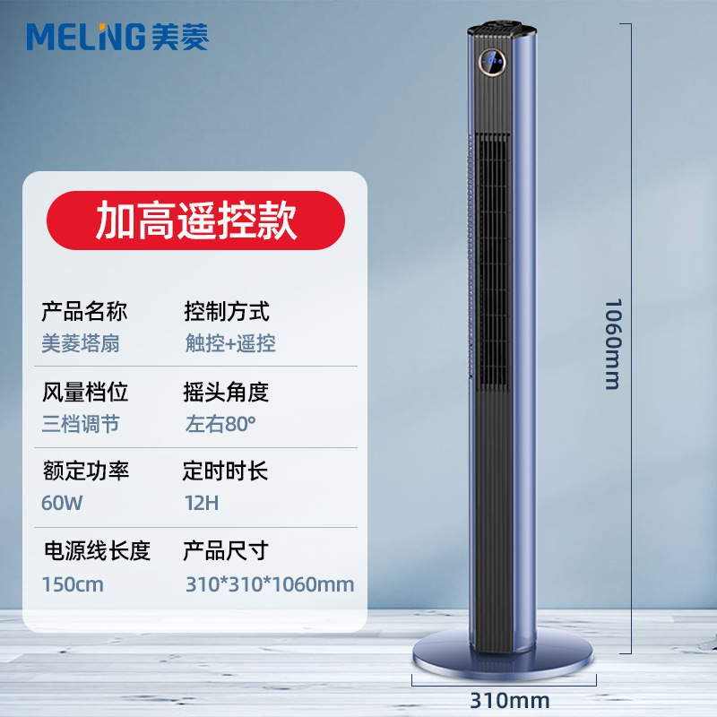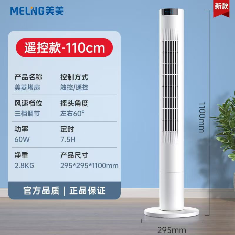 美菱塔扇制冷电风扇超强风家用卧室遥控循环摇头无叶静音省电电扇