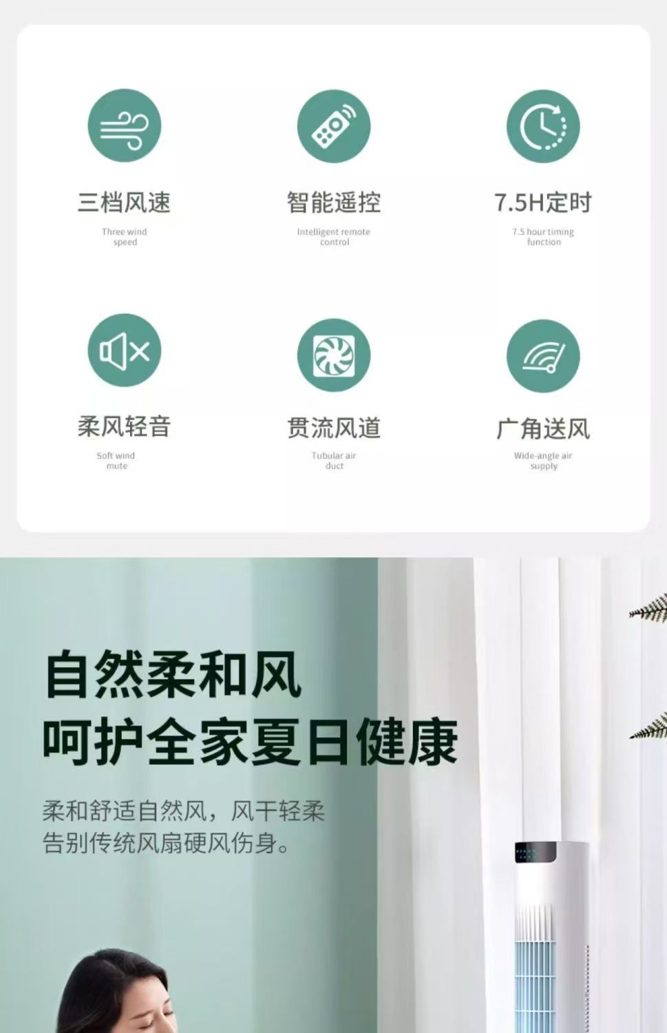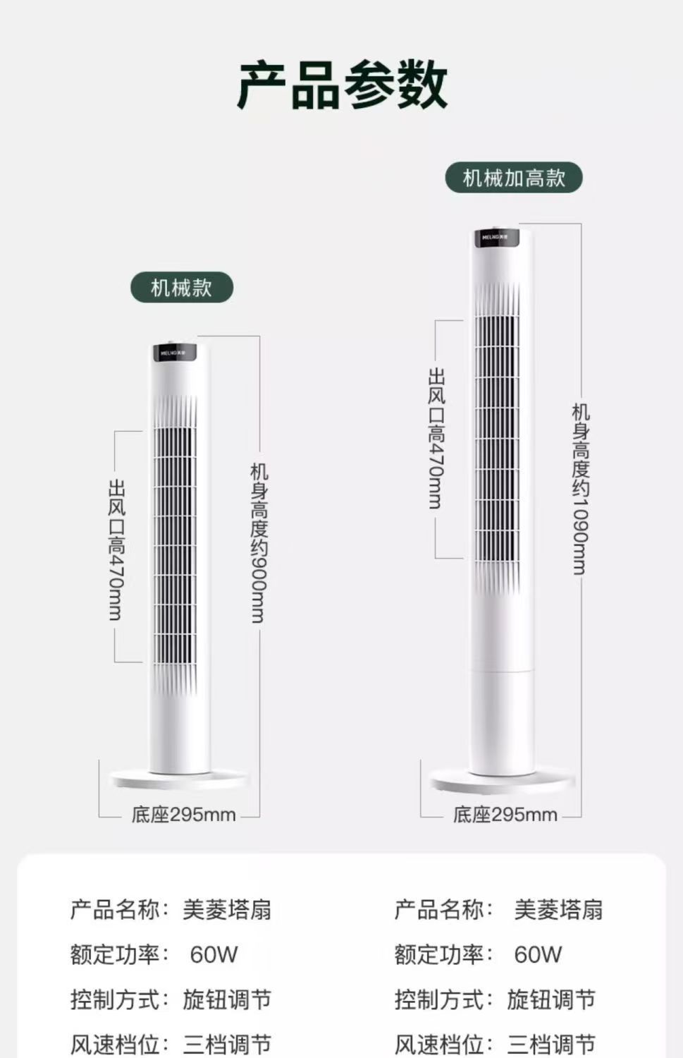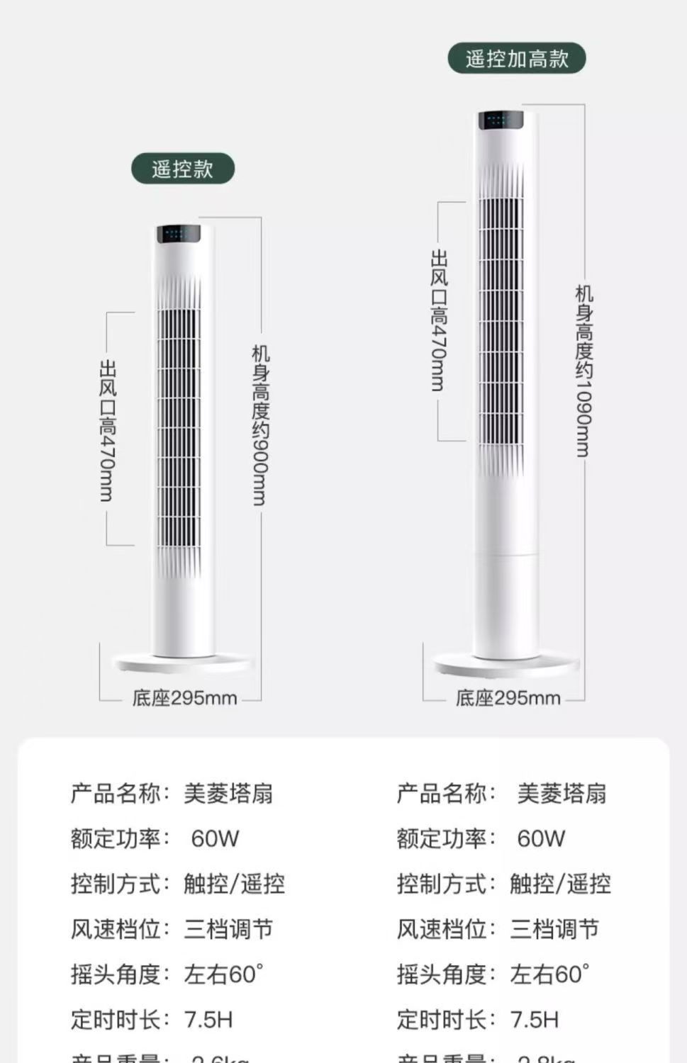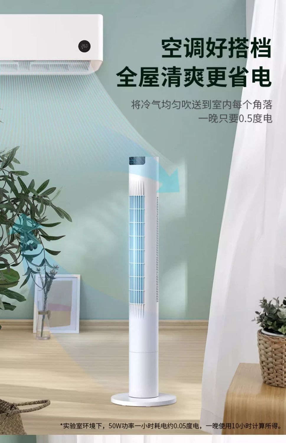 美菱塔扇制冷电风扇超强风家用卧室遥控循环摇头无叶静音省电电扇