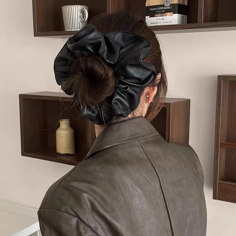 2024新年新款PU皮质大肠发圈女简约气质优雅发绳丸子头高马尾发饰