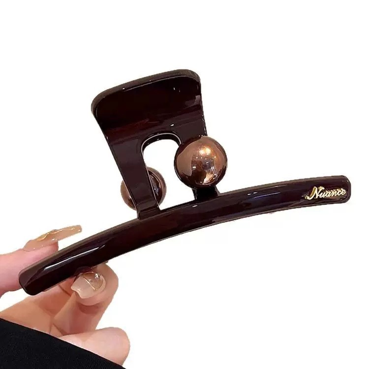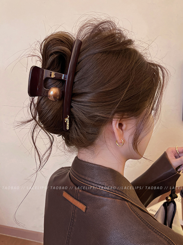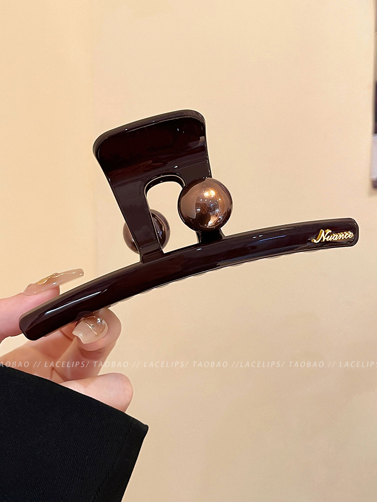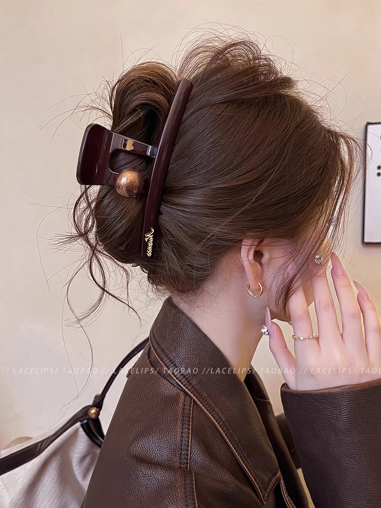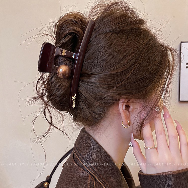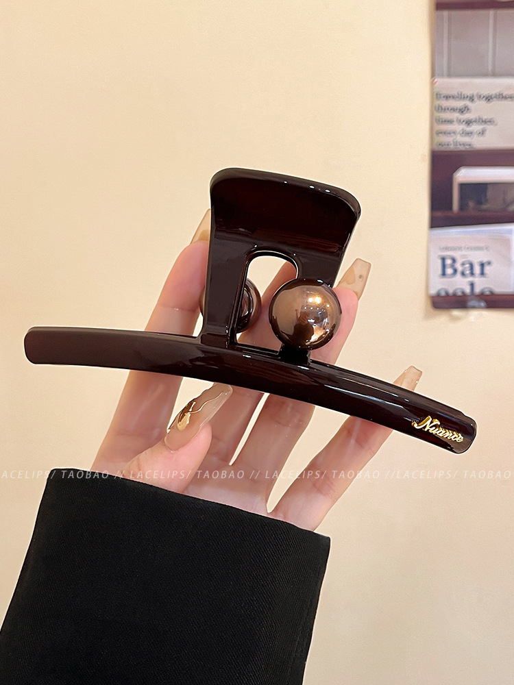 圆棕珠字母标抓夹2025新款后脑勺发量多大号鲨鱼夹高级感发夹头饰
