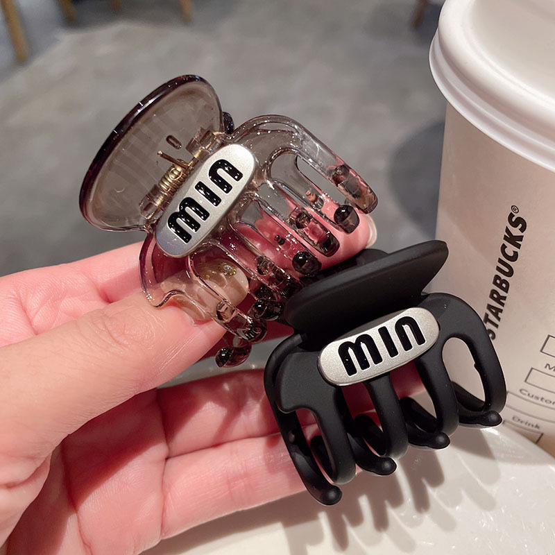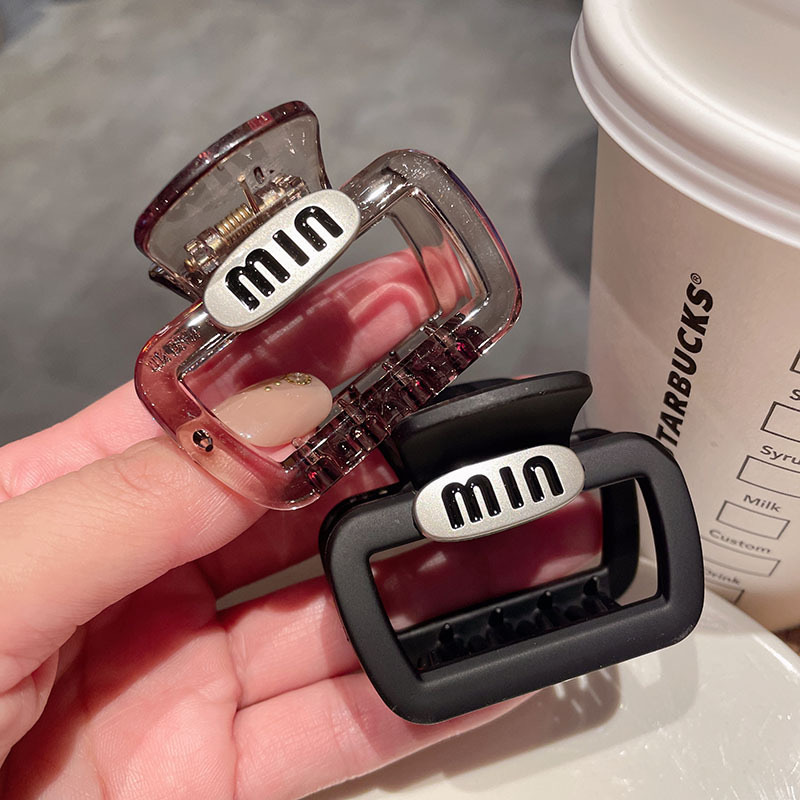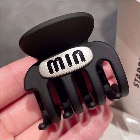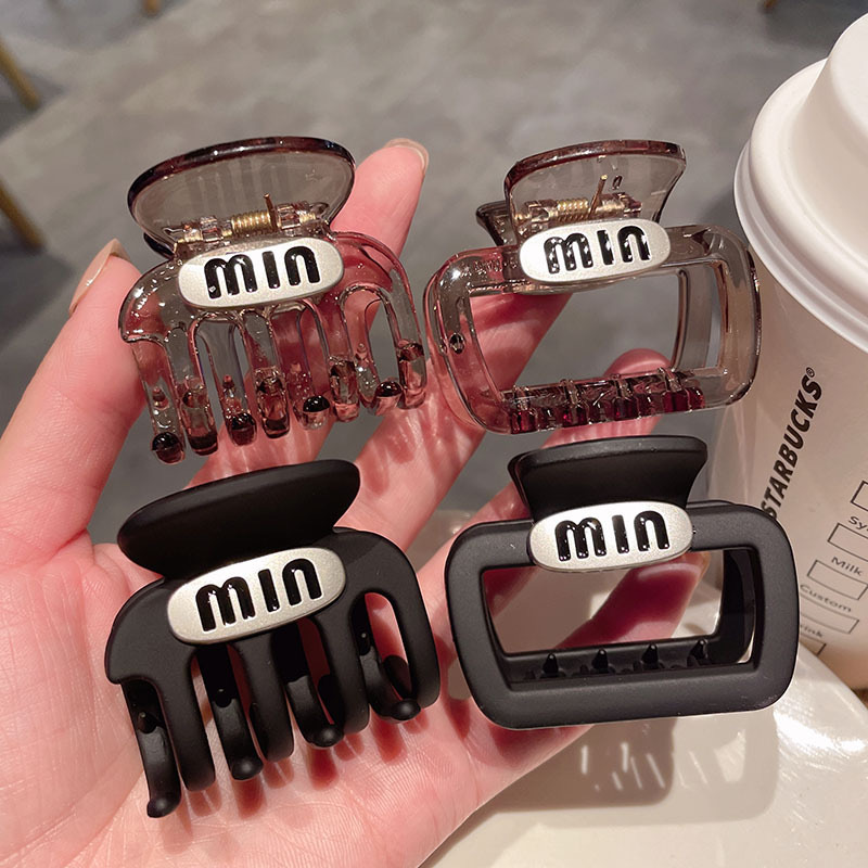 高级感磨砂黑色中号马尾抓夹2023新款方形半发抓银标后脑勺鲨鱼夹