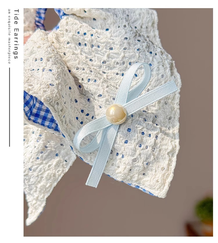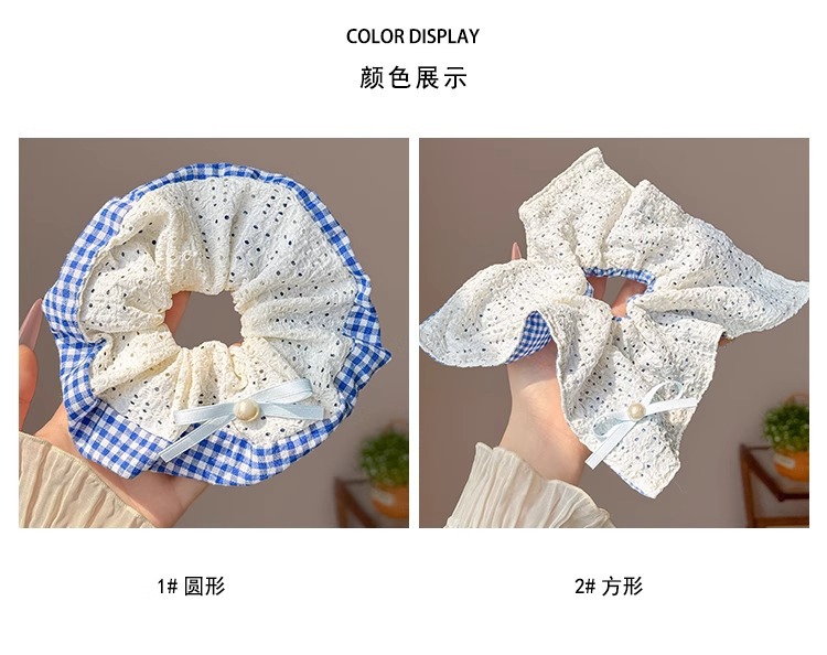 韩系蓝色格子方巾大肠发圈女高级感扎头发绳丸子头低马尾头绳发饰