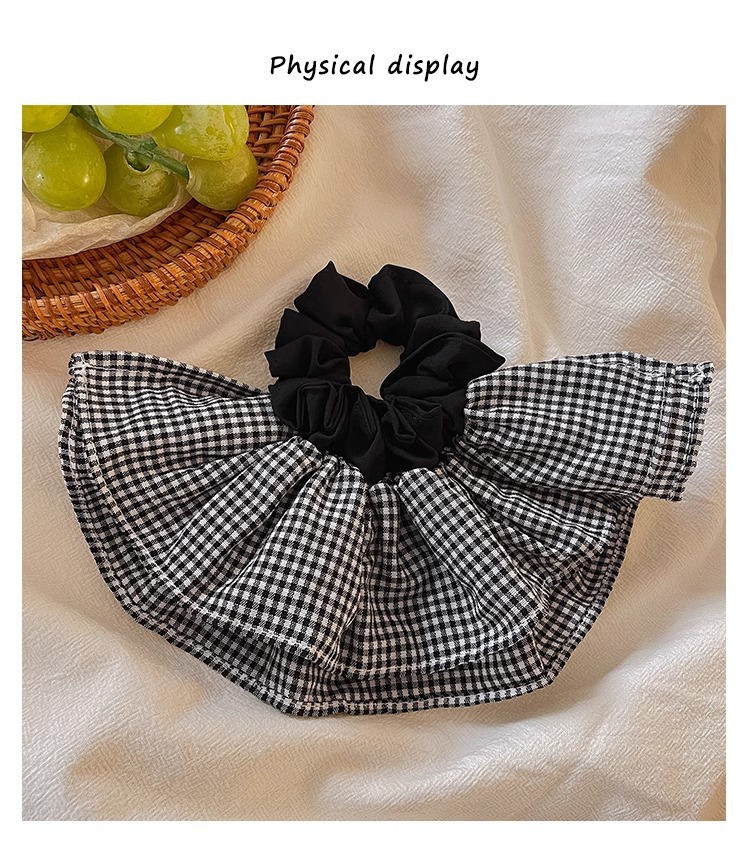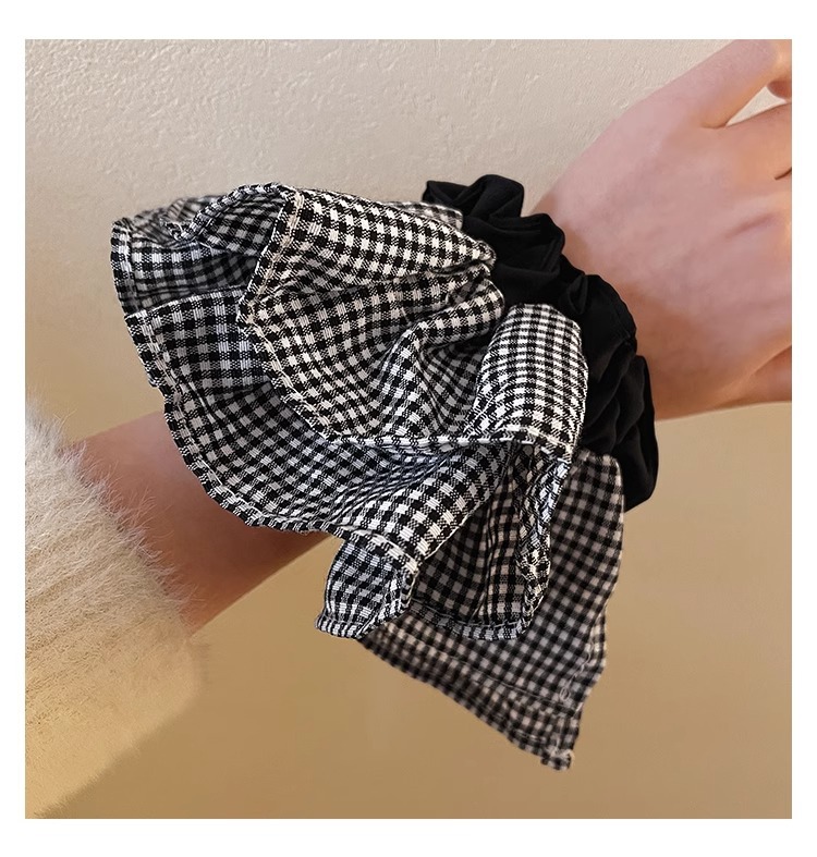 法式超大格纹裙摆大肠发圈女气质扎低马尾头花慵懒风肥肠发绳头绳