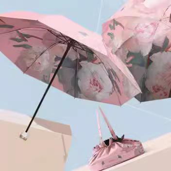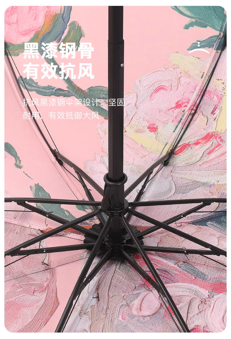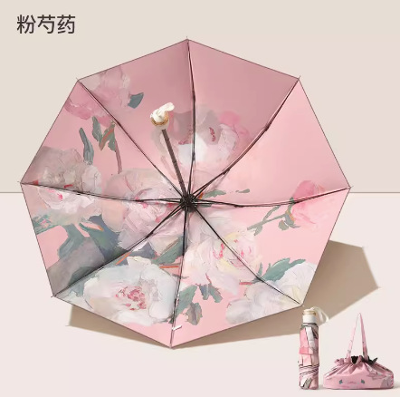 manual double-layer eight-bone black rubber umbrella (free handbag)-pink peony(手动双层八骨黑胶伞(送手提包)-粉芍药) USD $3.66 662 piece available