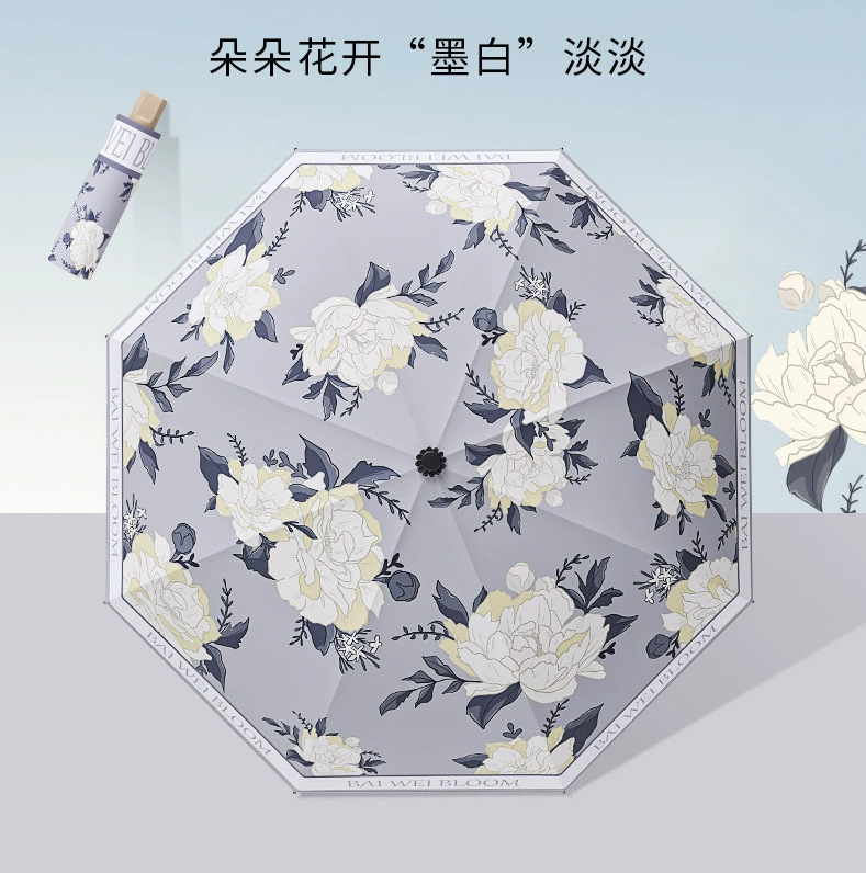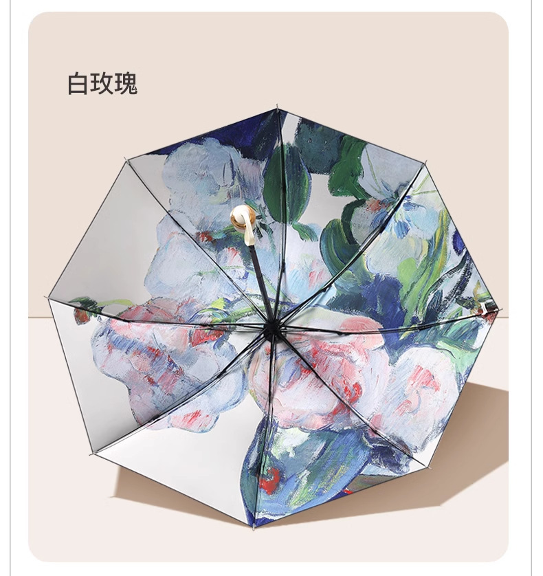 manual double-layer eight-bone black rubber umbrella (free handbag)-white rose(手动双层八骨黑胶伞(送手提包)-白玫瑰) USD $3.66 3163 piece available