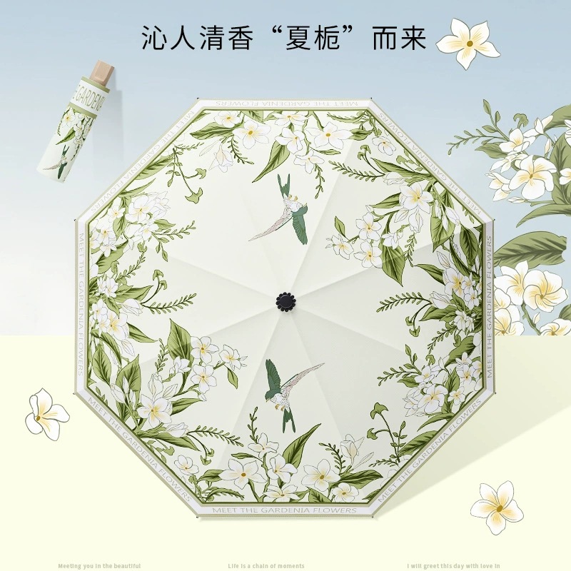 manual double-layer eight-bone black rubber umbrella (free handbag)-gardenia(手动双层八骨黑胶伞(送手提包)-栀子花) USD $3.66 4240 piece available