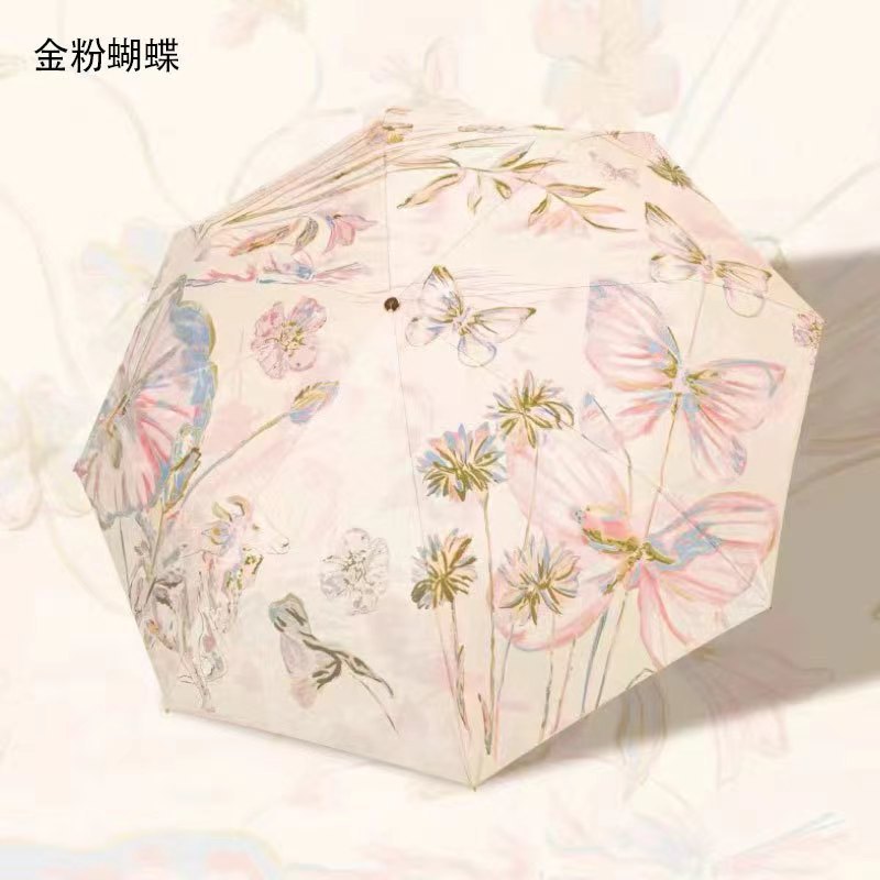 manual double-layer eight-bone black rubber umbrella (free handbag)-gold powder butterfly(手动双层八骨黑胶伞(送手提包)-金粉蝴蝶) USD $3.66 4356 piece available