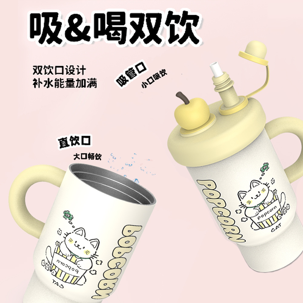新款高颜值保温杯大容量冰霸杯可爱吸管杯汽车杯双饮把手保冷杯