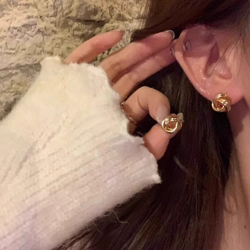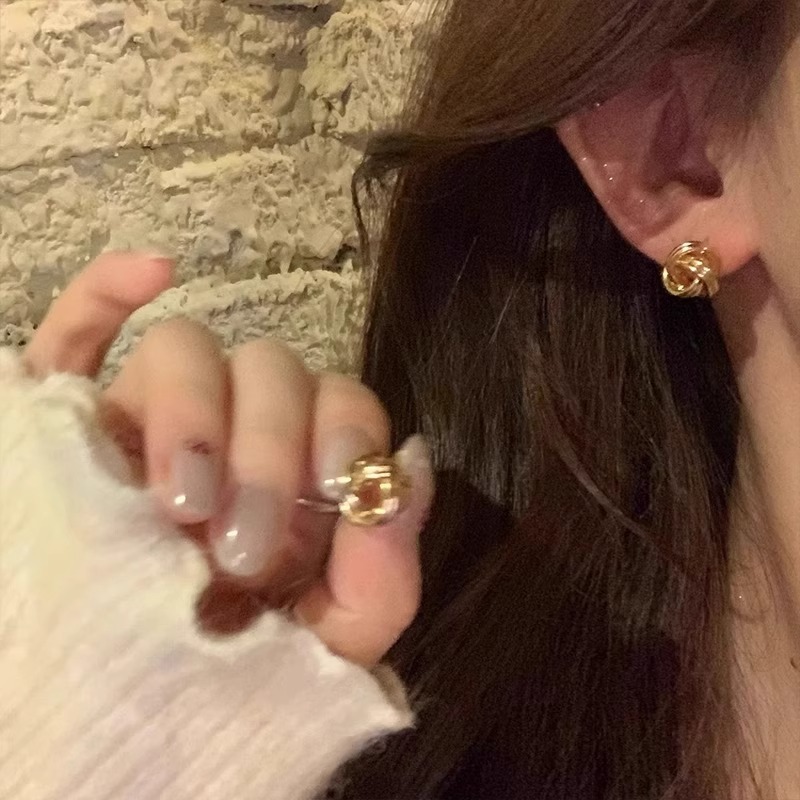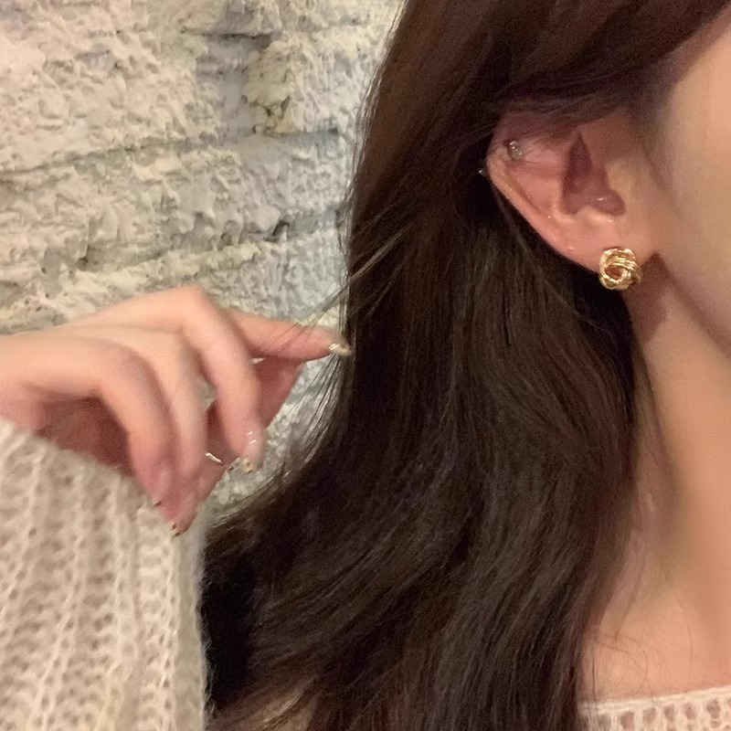 复古金色缠绕麻花耳钉S925银针小众设计感耳饰气质百搭不规则