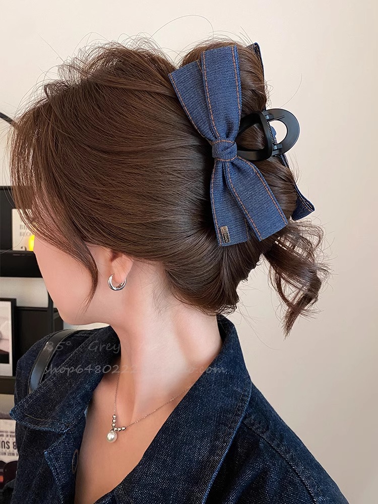 韩系时髦牛仔蝴蝶结抓夹2025新款高级感发夹后脑勺大号鲨鱼夹发夹