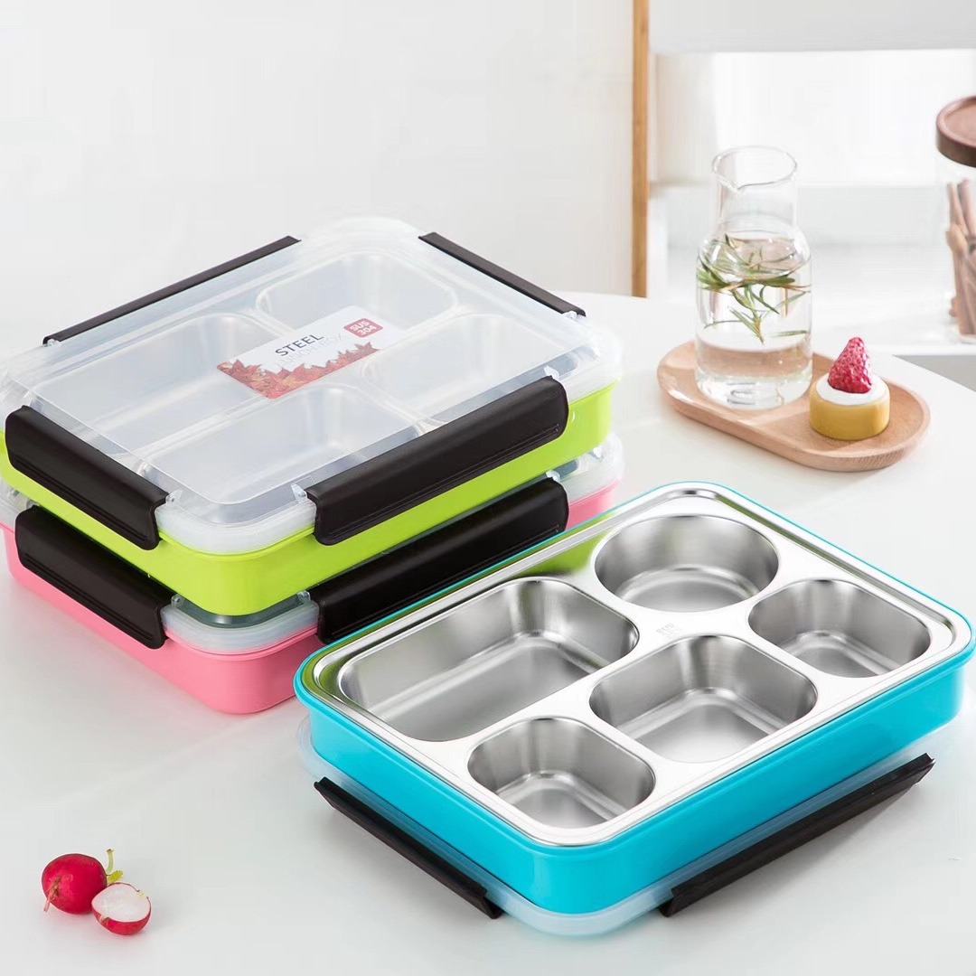 产品名称:304不锈钢分格保温餐盒 大四格大五格餐盘