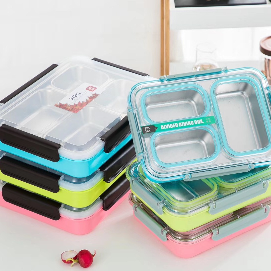 304不锈钢餐盒密封分格快餐盘注水保温便当盒四格餐盒学生饭盒