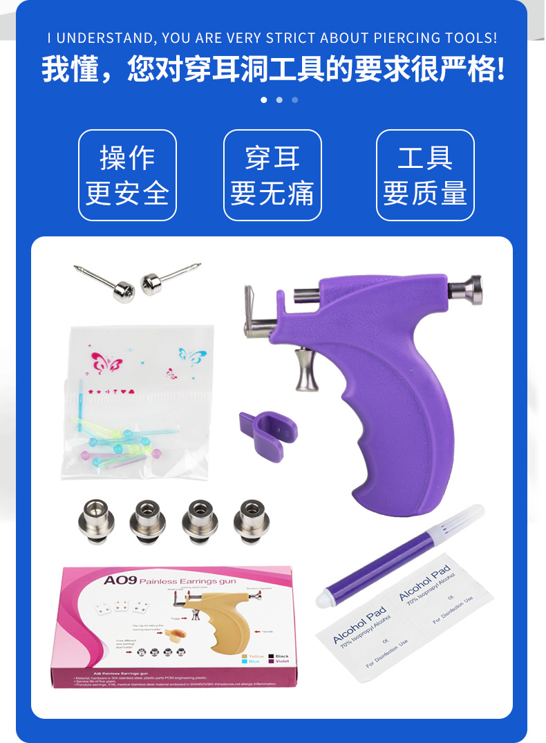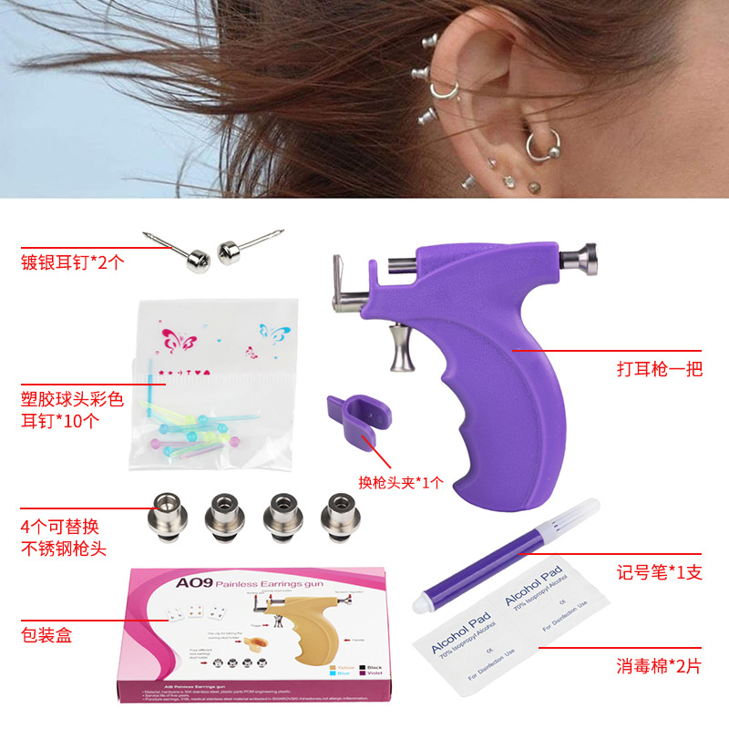 亚马逊打耳洞的耳钉枪不锈钢耳钉枪穿耳洞套装穿耳孔工具厂家批发