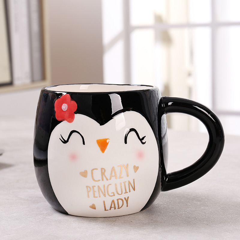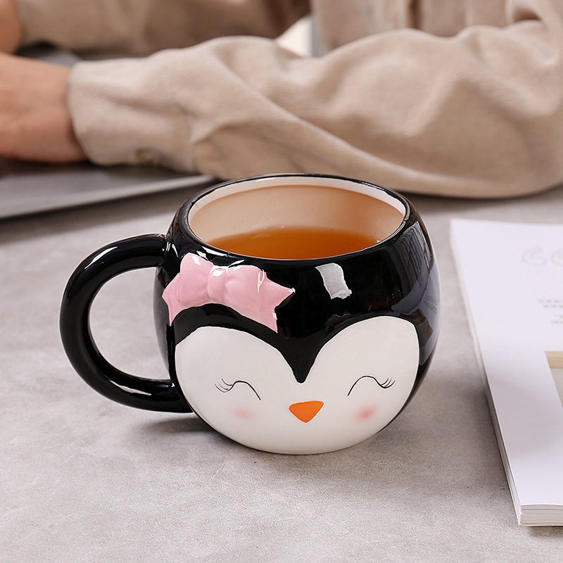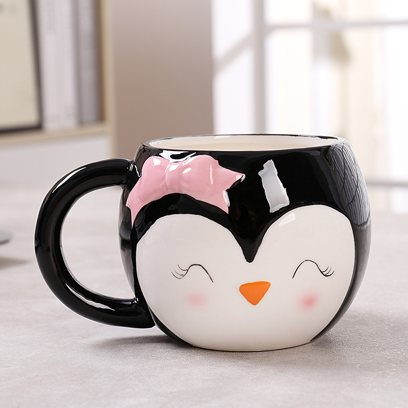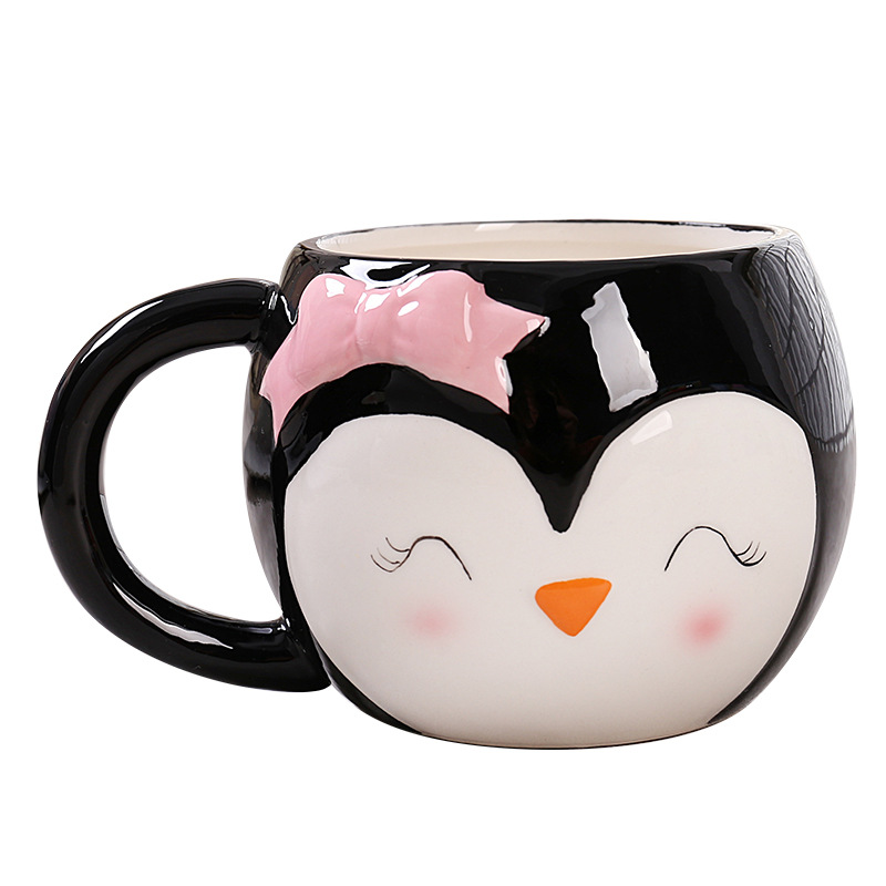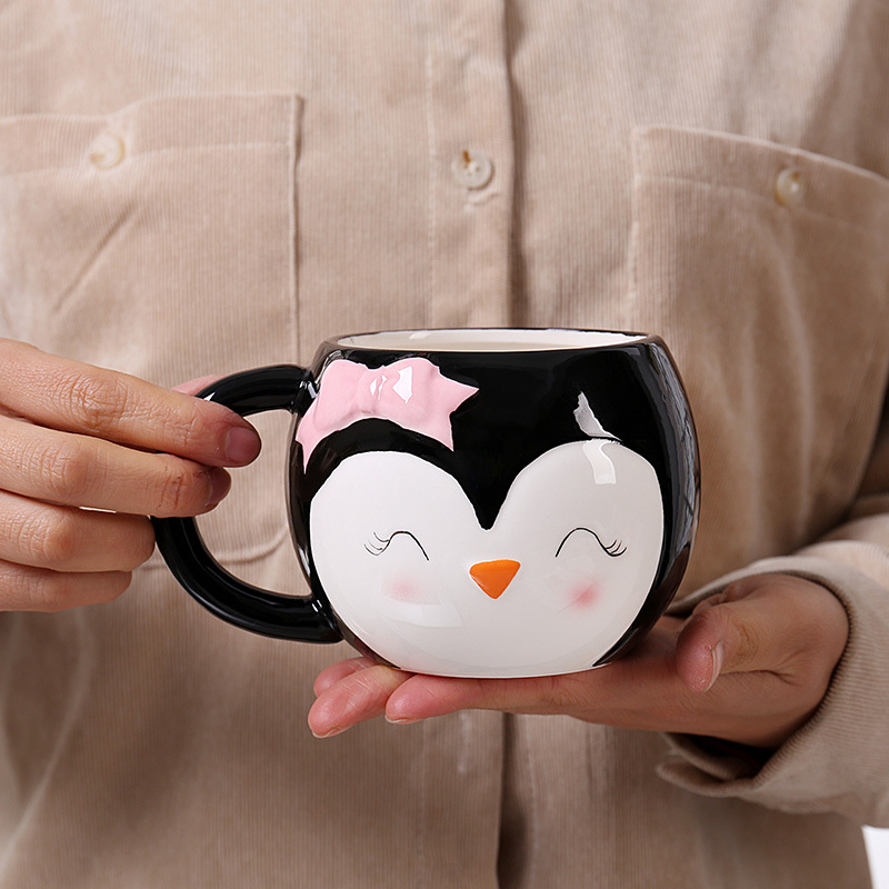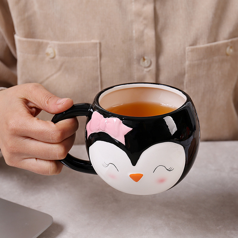 跨境 卡通陶瓷杯企鹅造型马克杯可爱企鹅牛奶杯卡通陶瓷杯办公杯