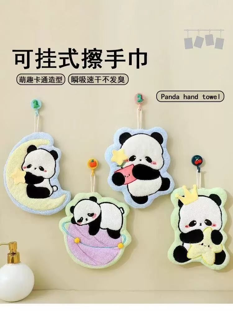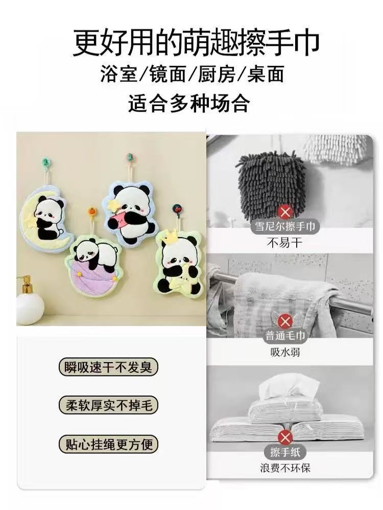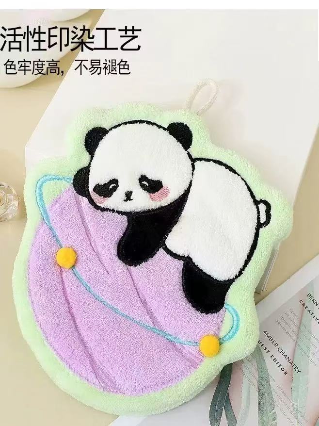 25新款珊瑚绒熊猫可爱卡通儿童擦手巾 厨房家用吸水批发加厚柔软