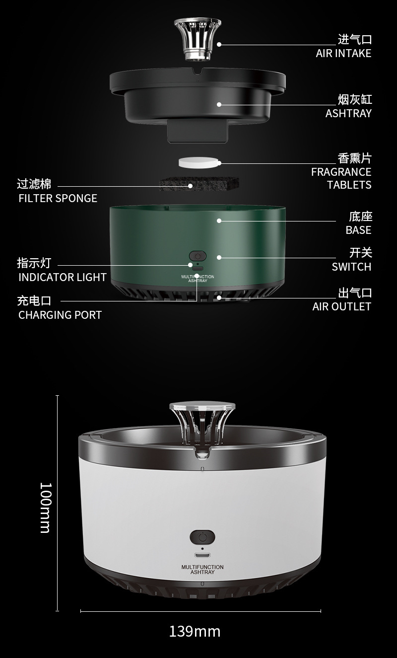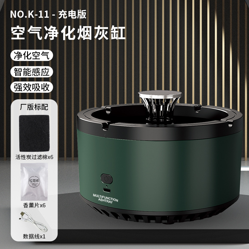 充电款智能烟灰缸净化器多功能家用桌面除烟除味空气净化烟灰缸..