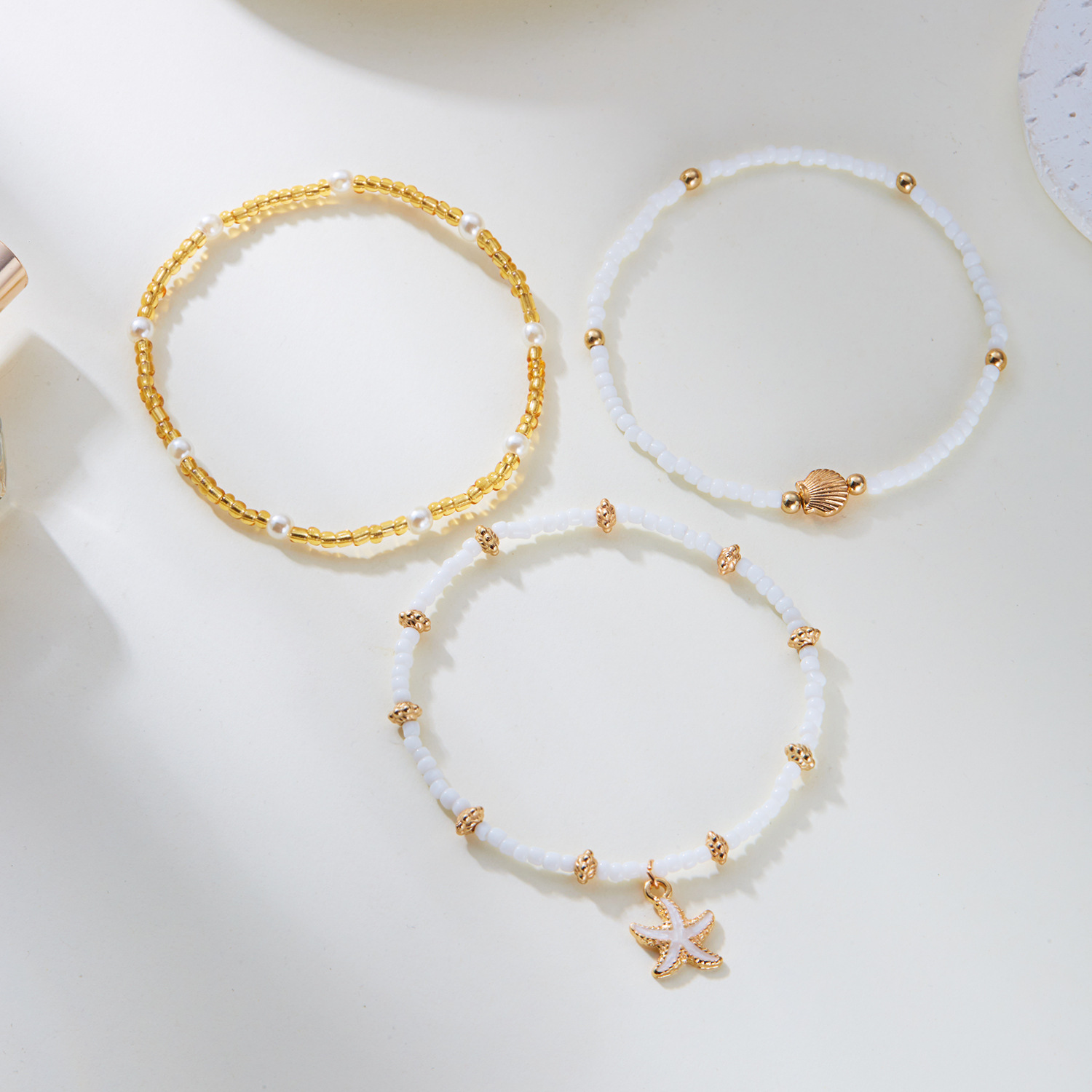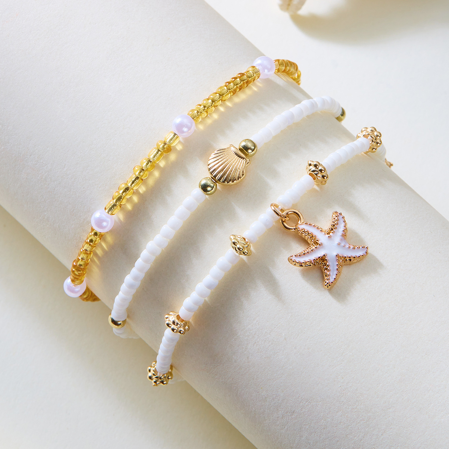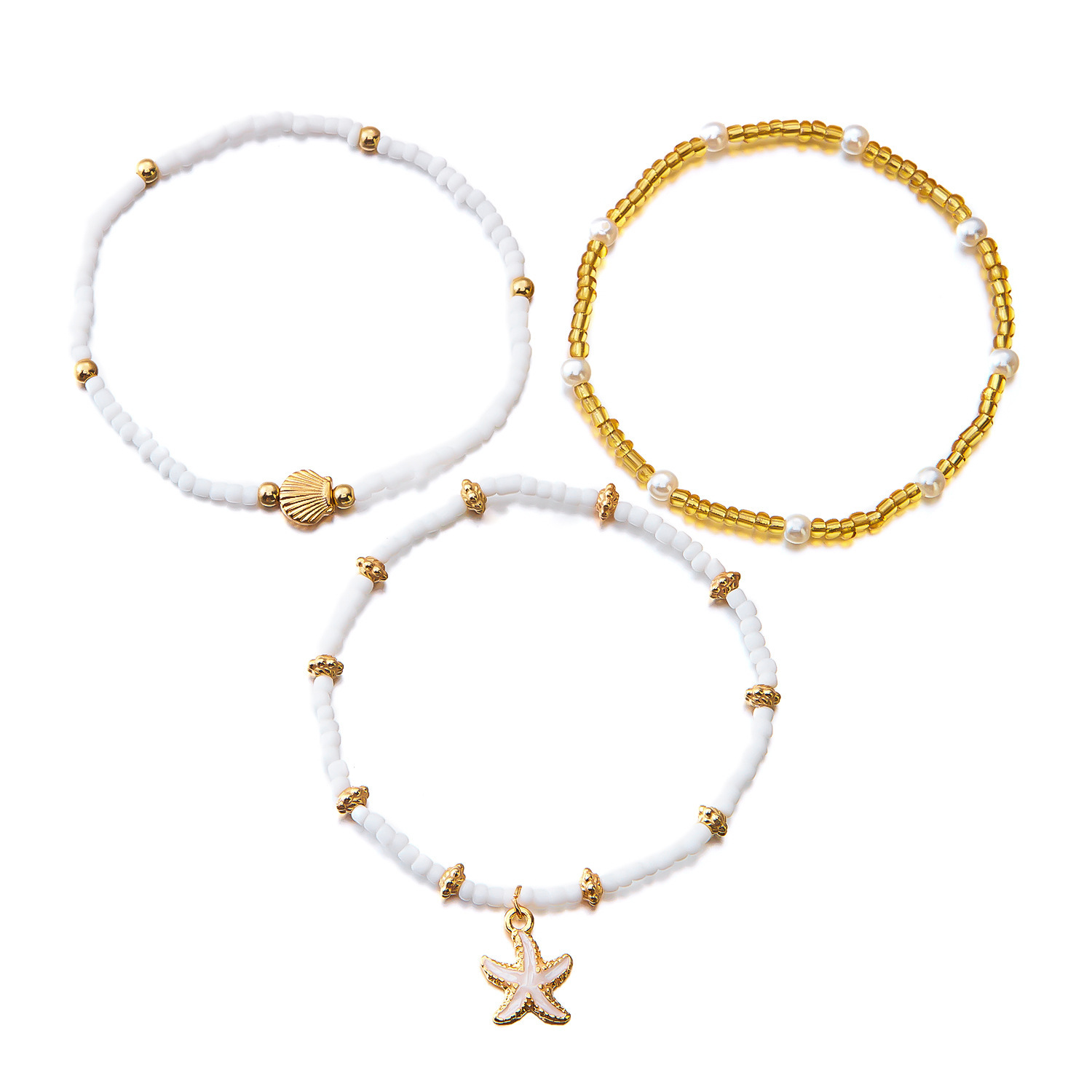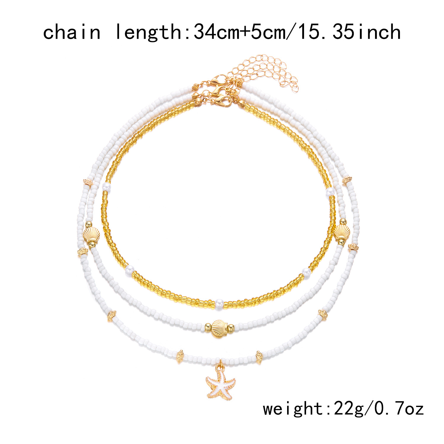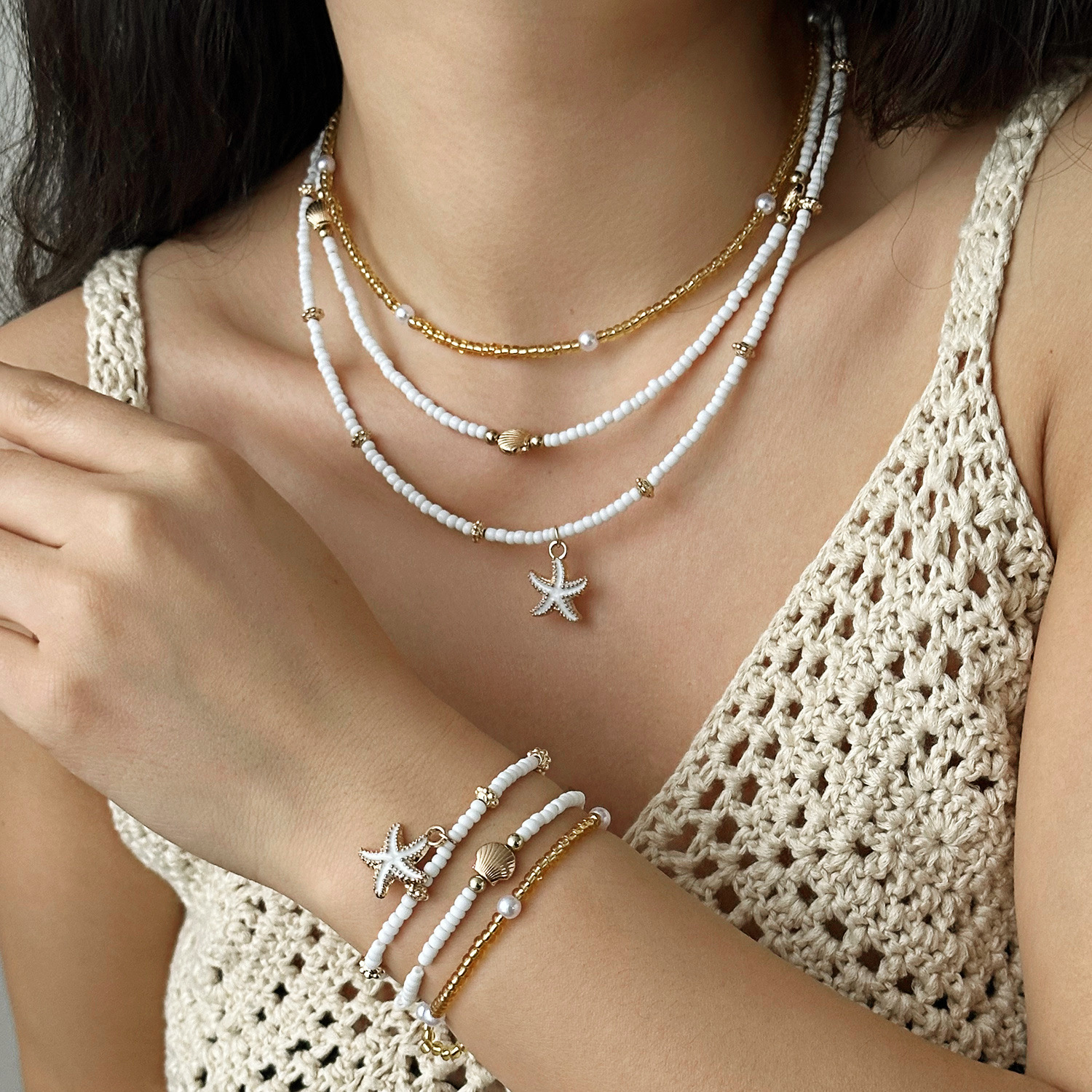 欧美跨境新款沙滩米珠贝壳手饰夏季百搭海星贝壳米珠项链脚链套装