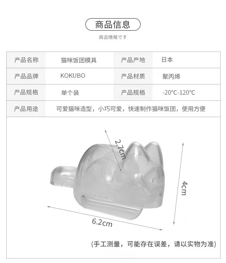 KOKUBO原装进口饭团模具可爱猫咪米饭造型新款儿童卡通寿司脱模具
