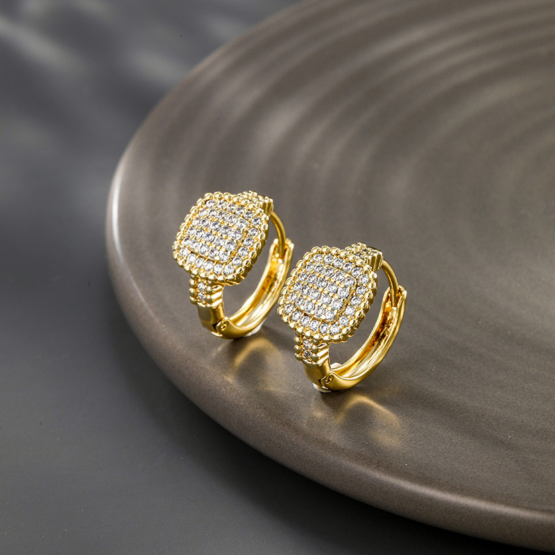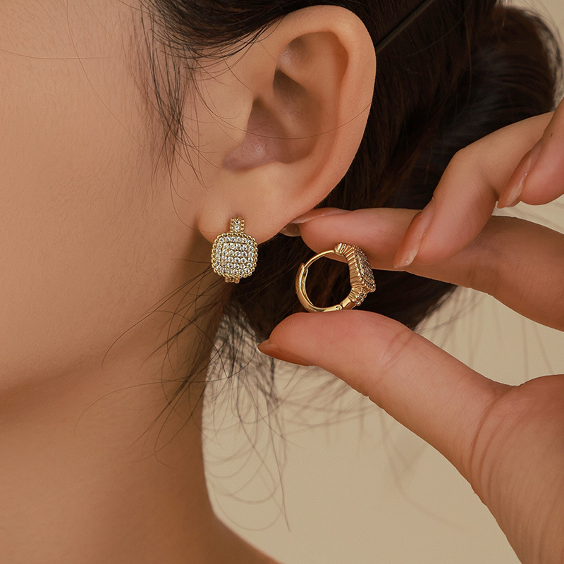 旭平首饰 新款时尚简约高级感合金电镀14k金色微镶锆石耳圈耳扣女