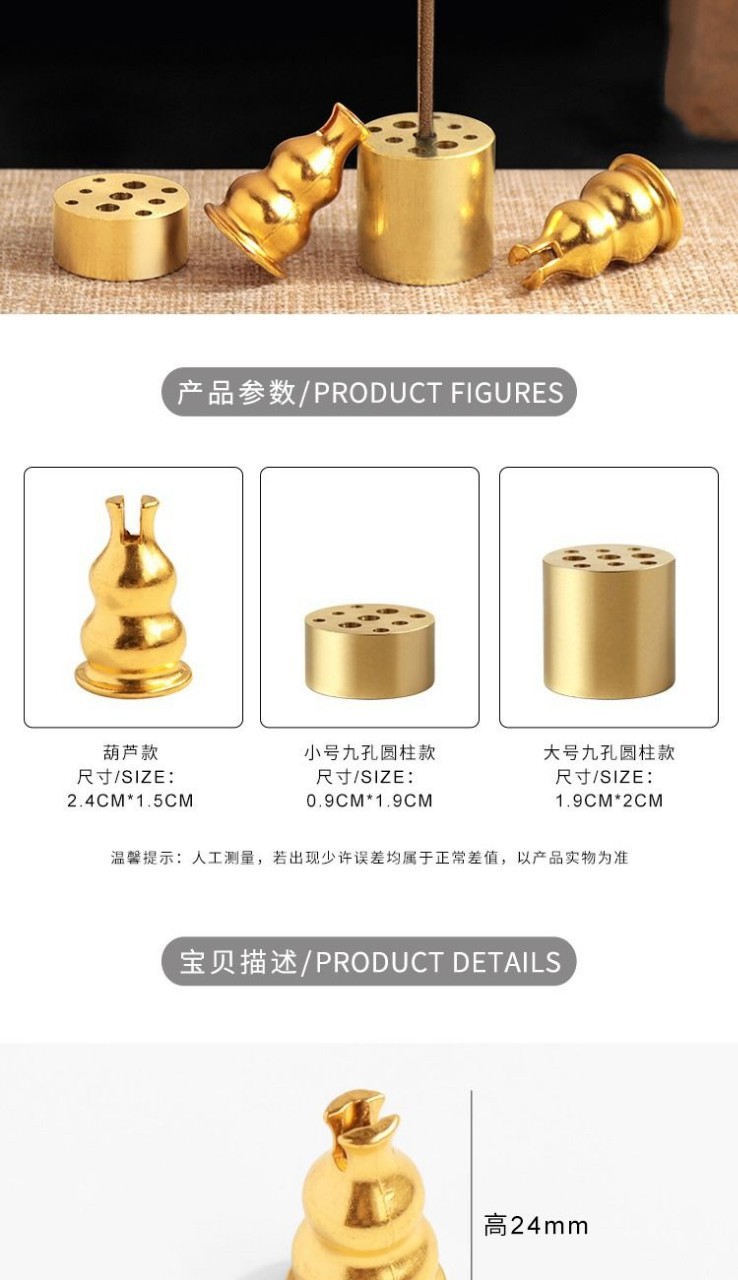 镀铜九孔香插葫芦香架线香炉香托檀香香座沉香多孔家用香炉摆件
