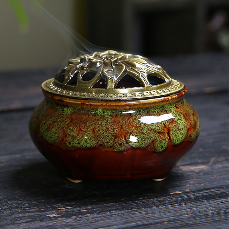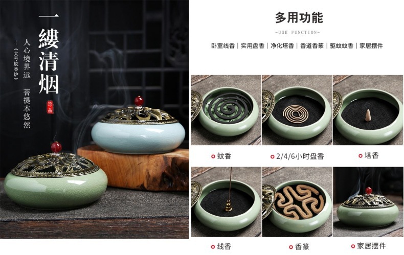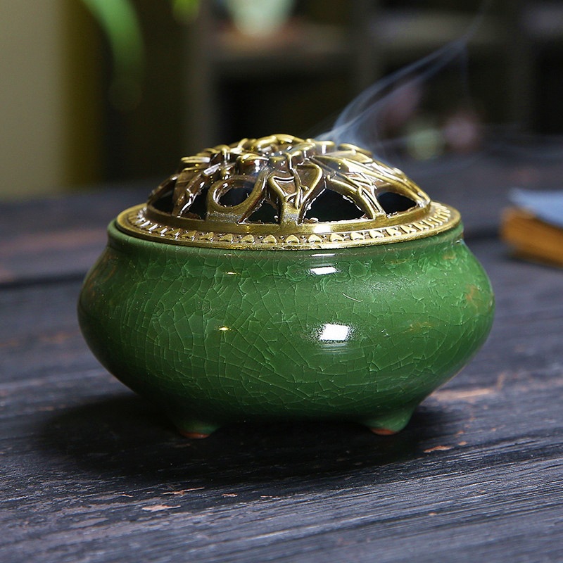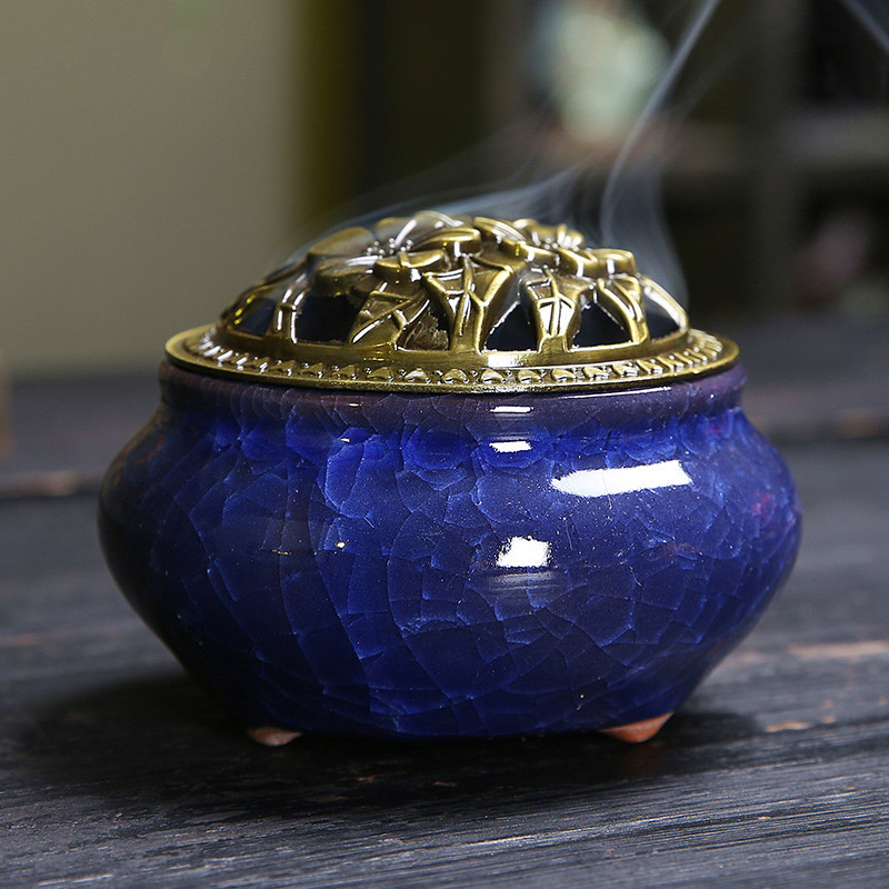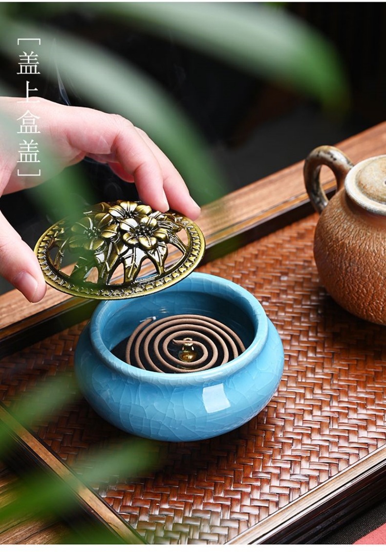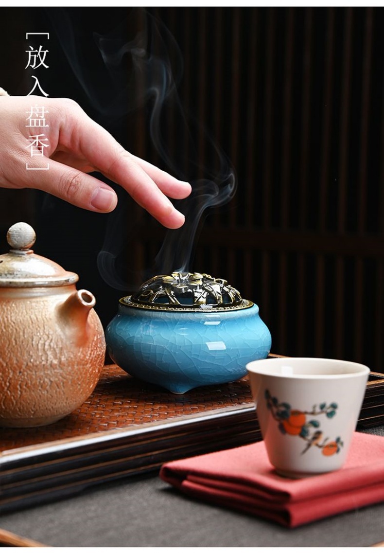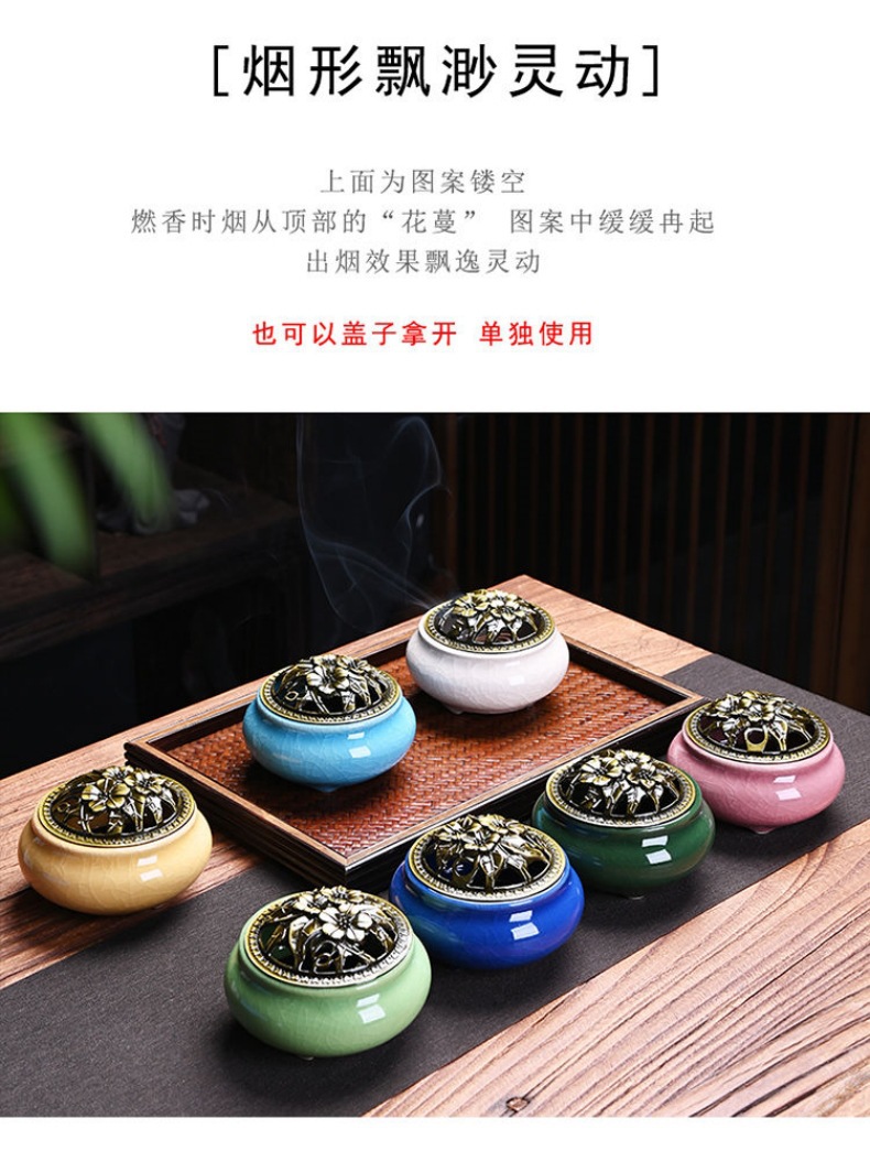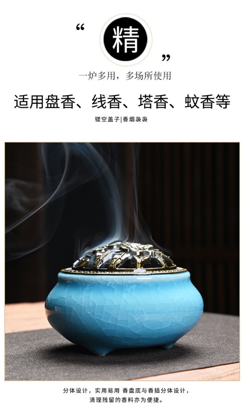 陶瓷香炉窑变冰裂哥窑树脂香炉家用檀香沉香塔盘香薰蚊香炉熏香炉