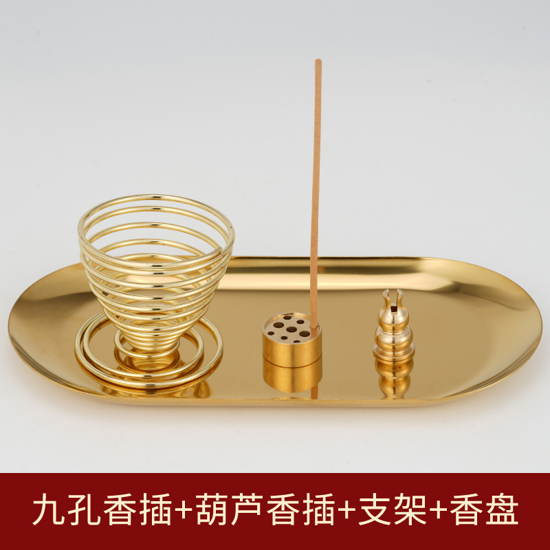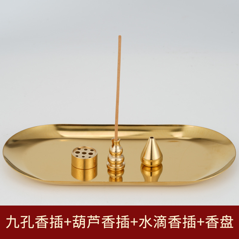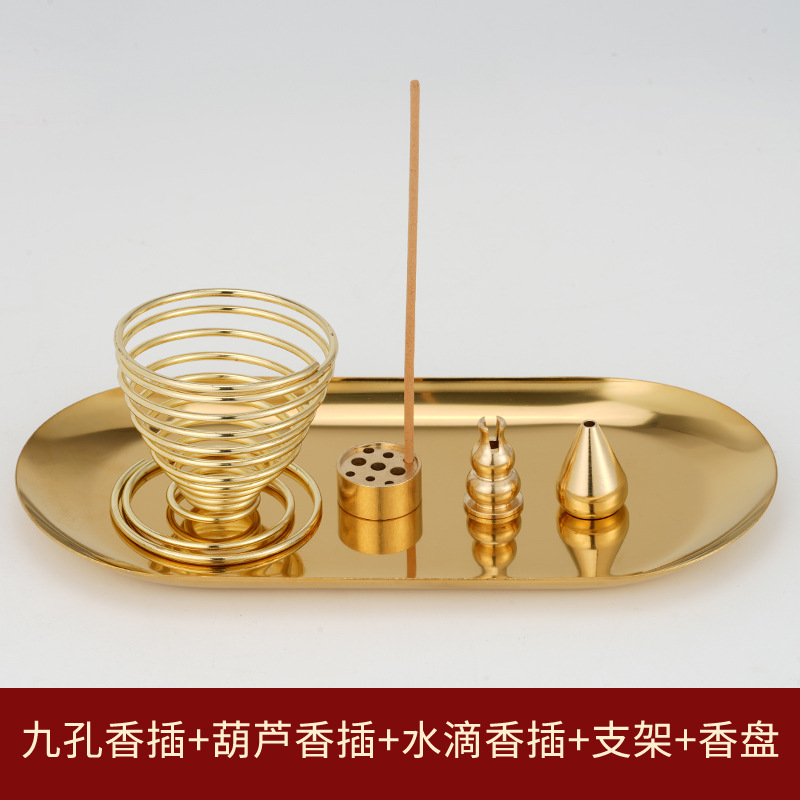 亚马逊同款迷你黄铜九孔香座葫芦香插水滴香插线香盘香薰炉配件