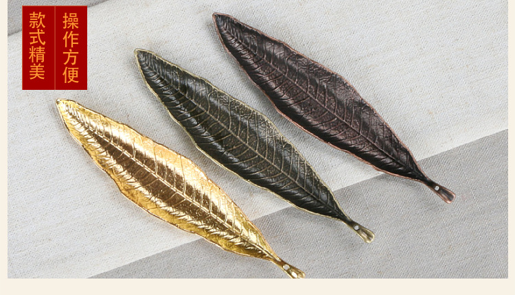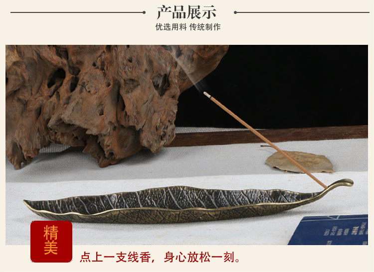 金叶子香插线香香托合金仿古菩提叶创意卧香香盒檀香支架香插摆件