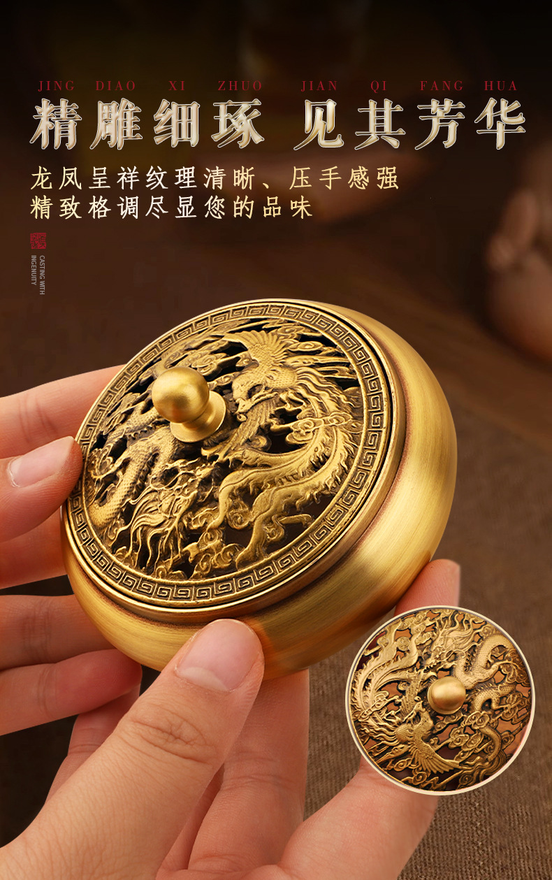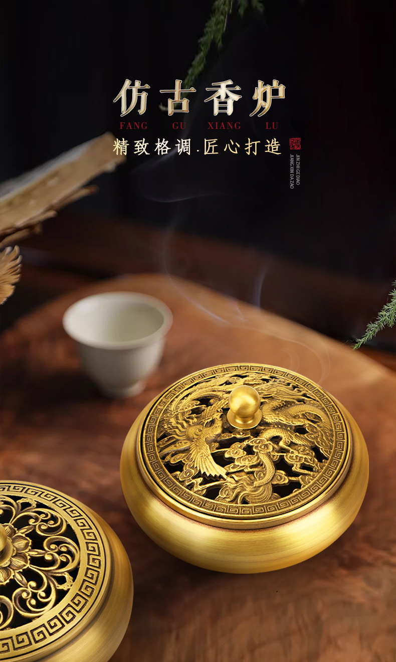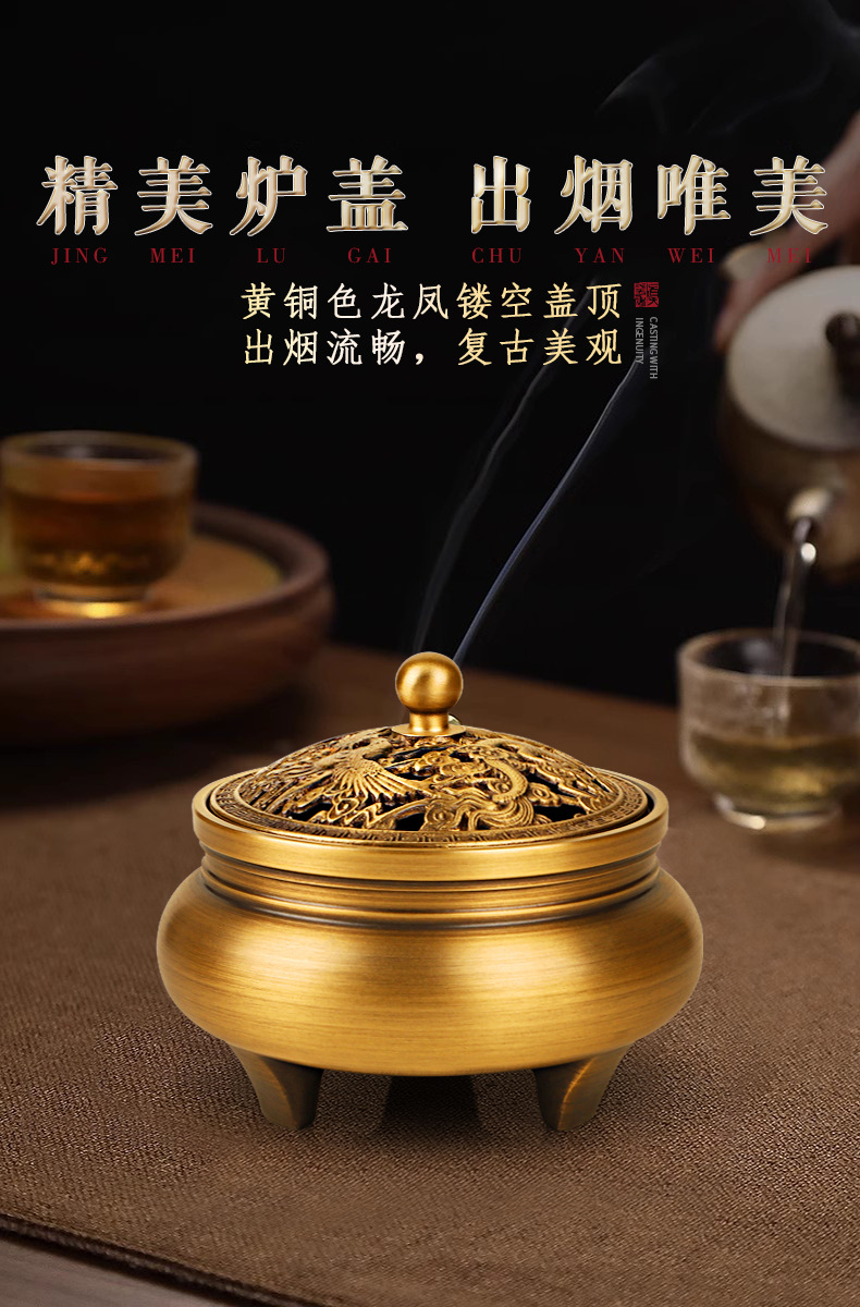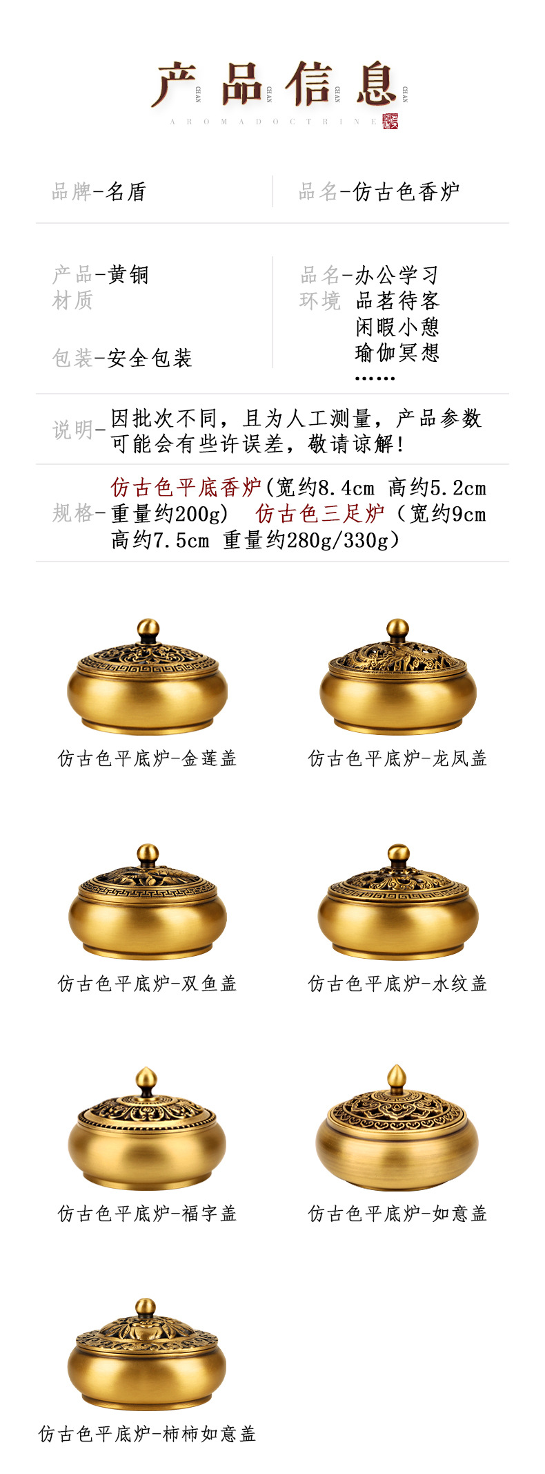 黄铜香炉带盖平底三足小香炉插香家用盘香炉摆件上香批发工艺品