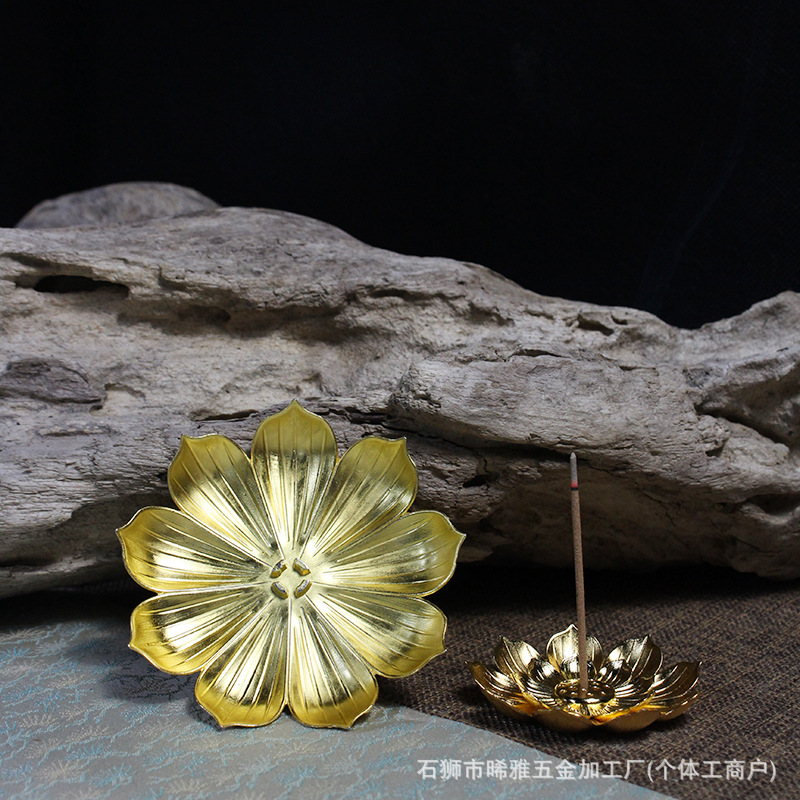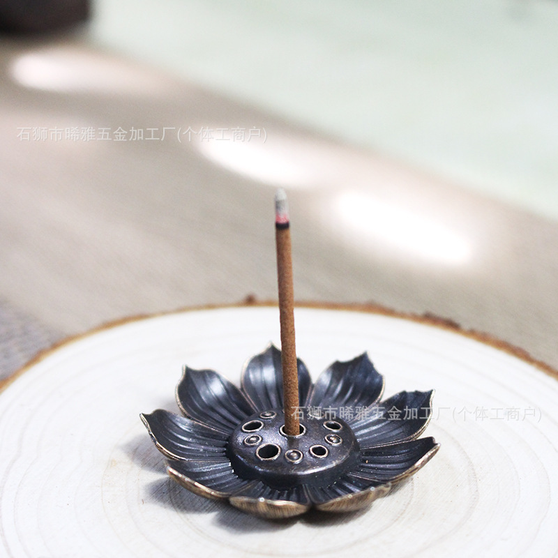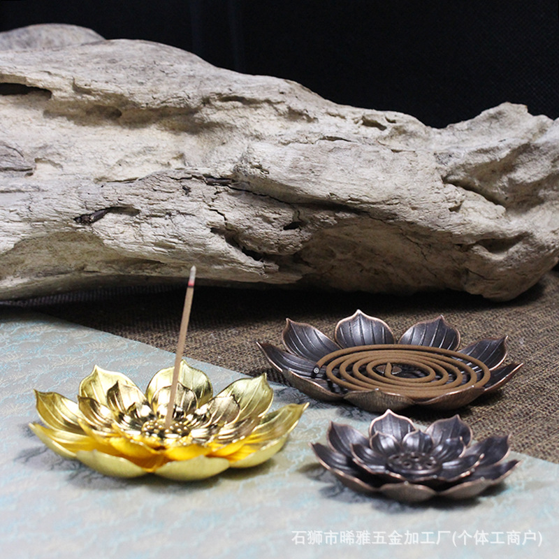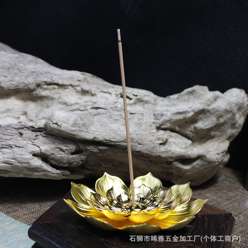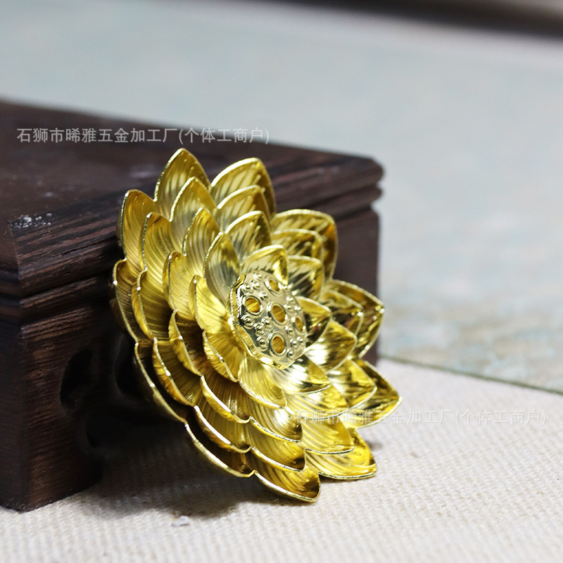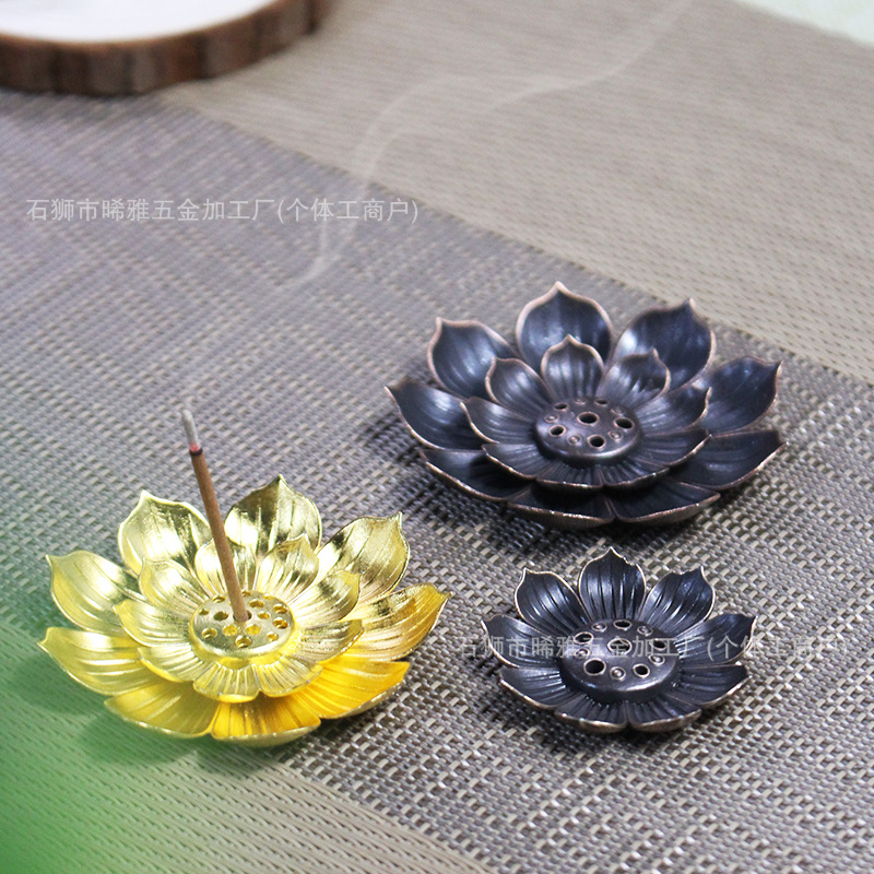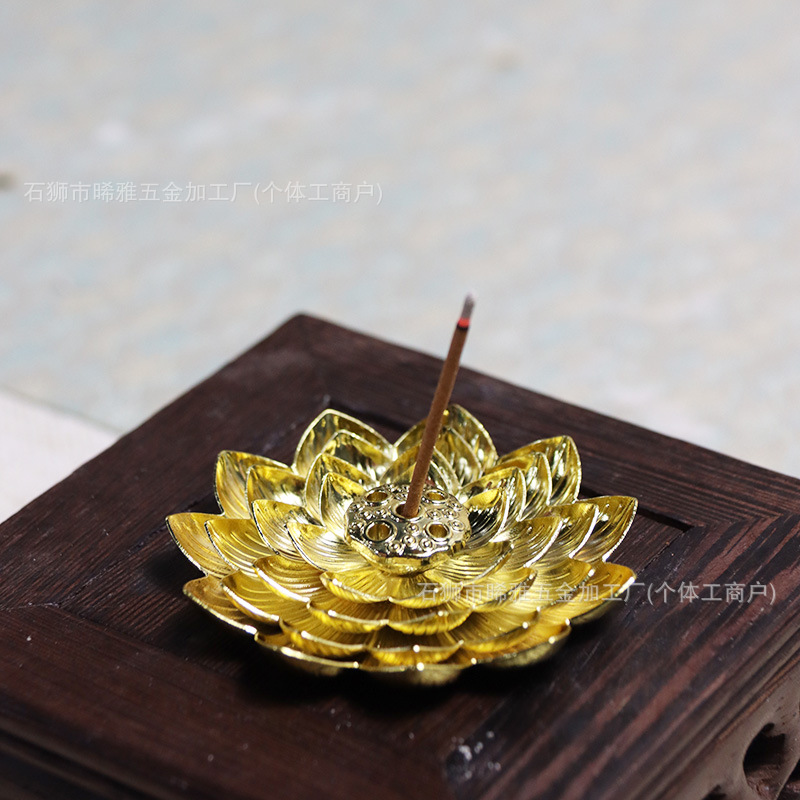 莲花香插摆件线香炉香托香座莲花香插家用禅意金属3层莲花香薰炉