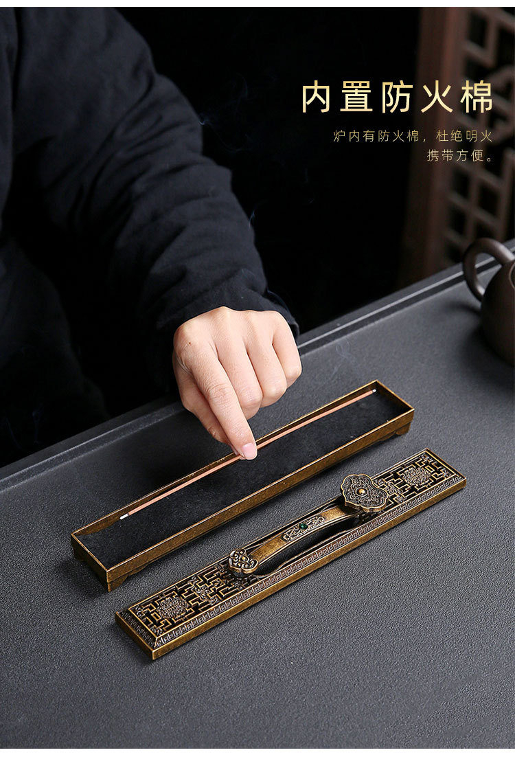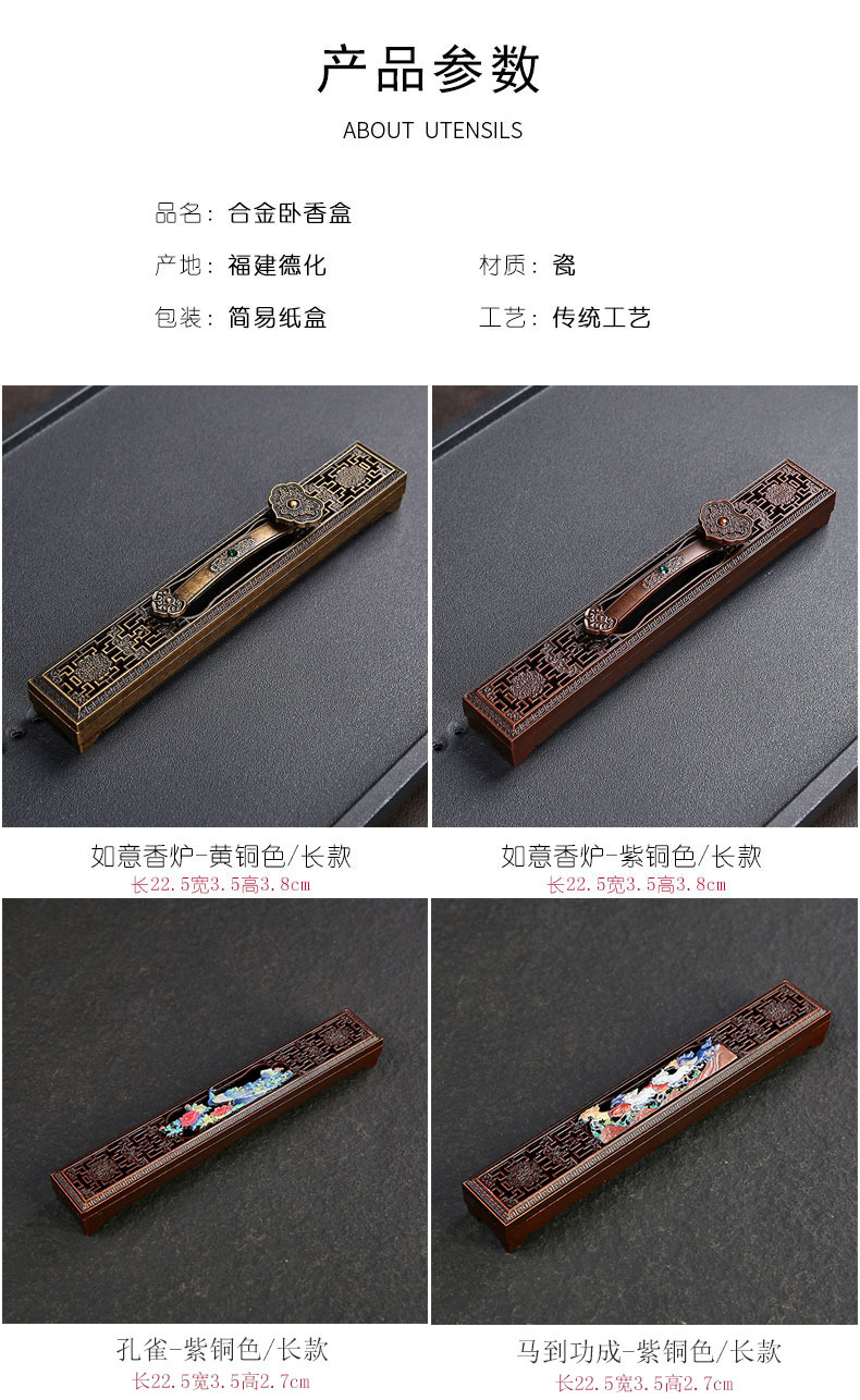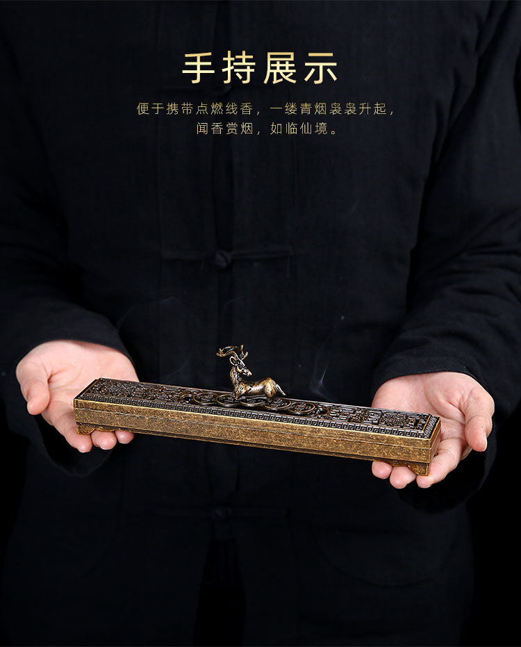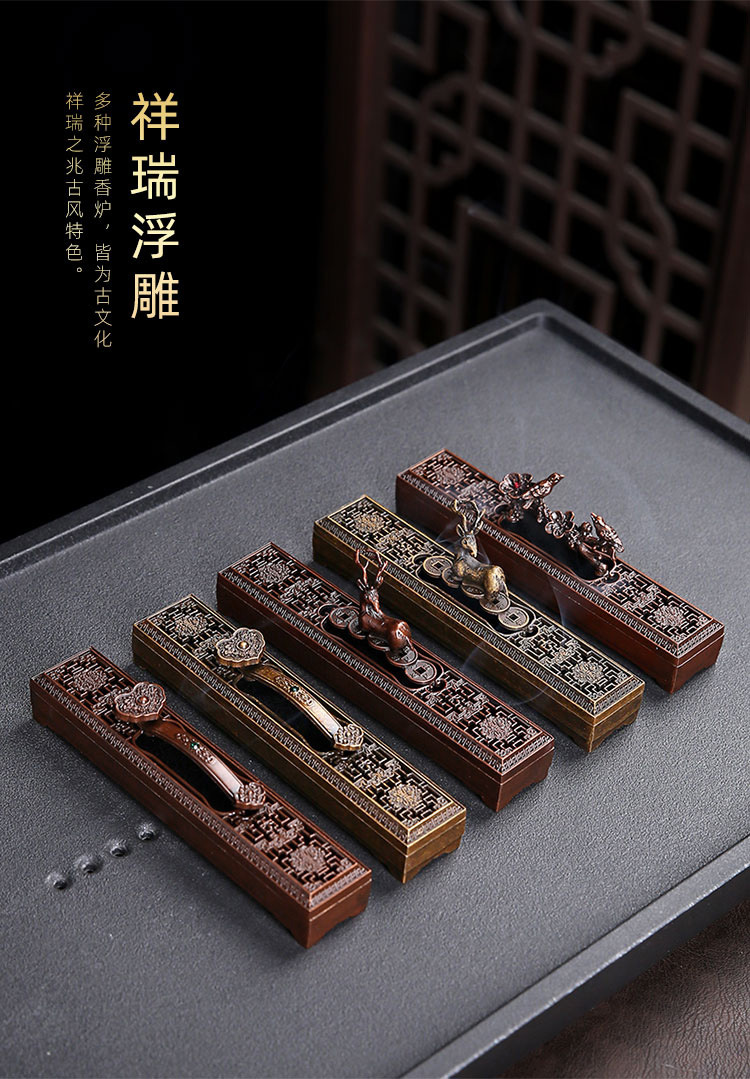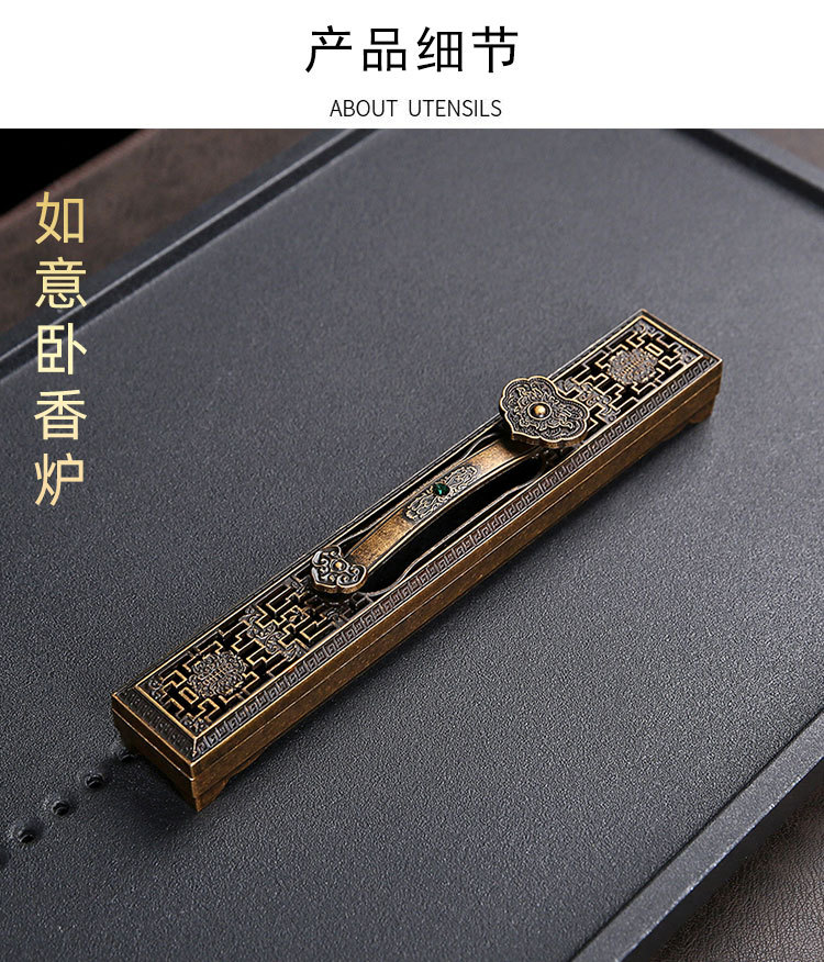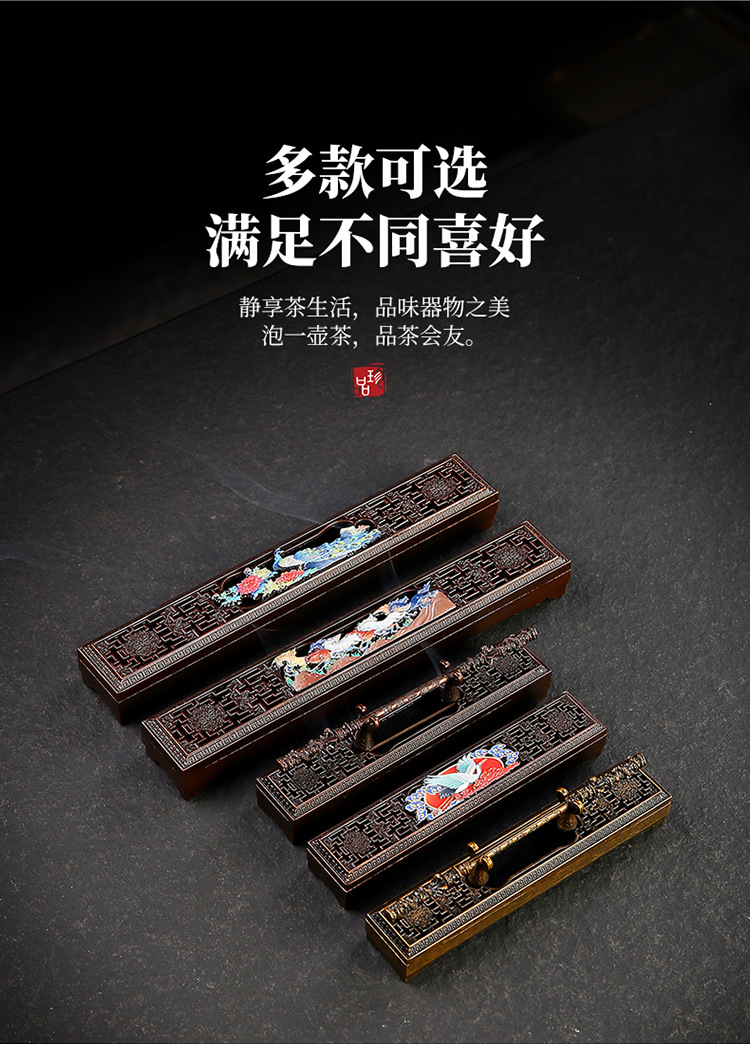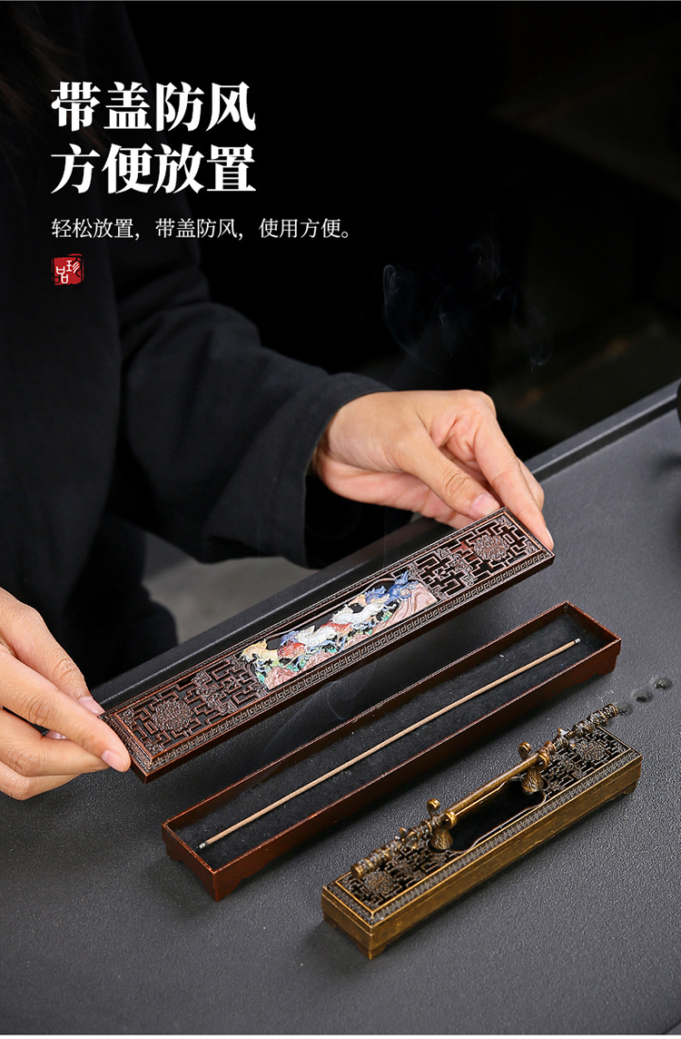 卧香盒 长线香插香座盘托香盒家用室内檀香炉家用室内摆件 卧香炉