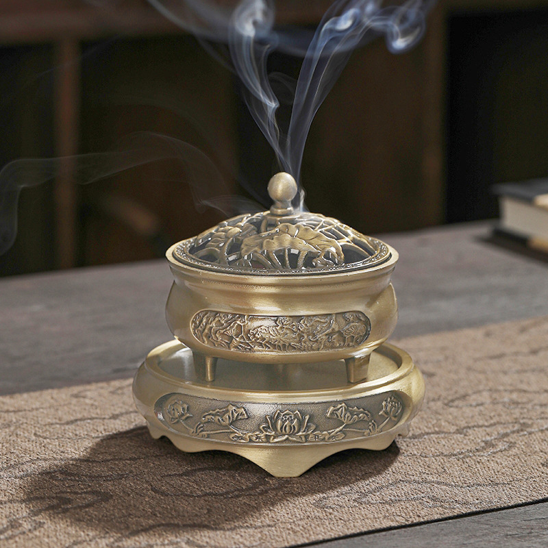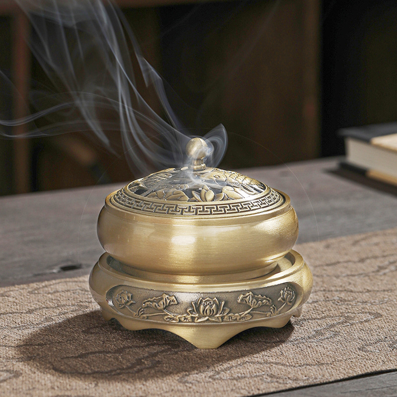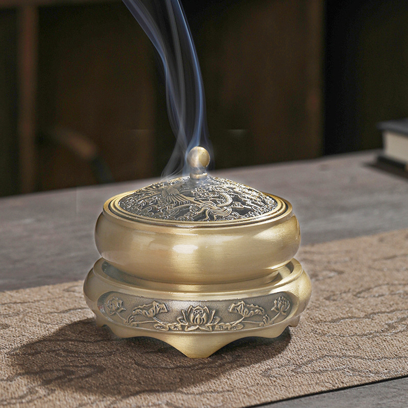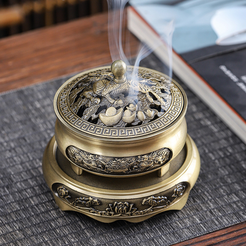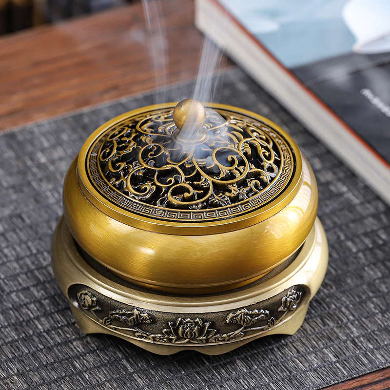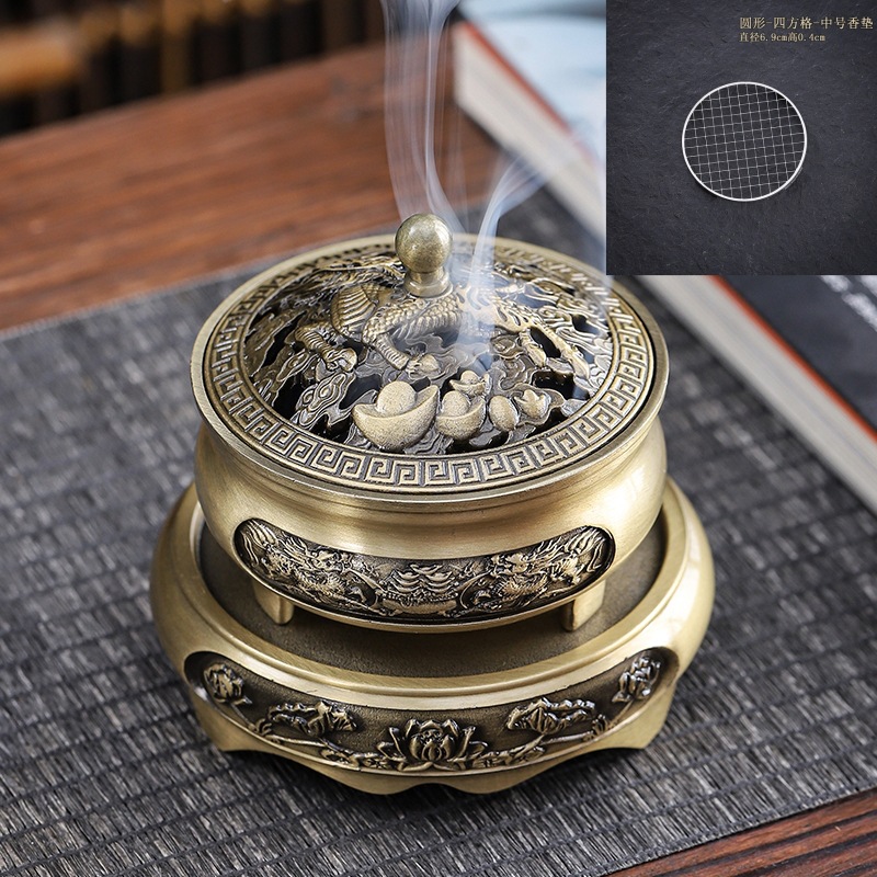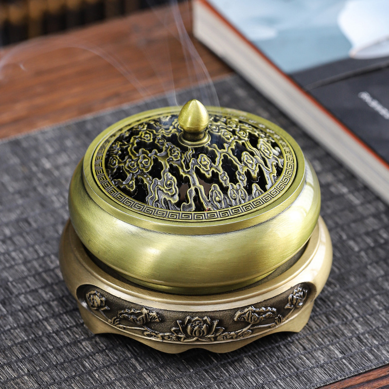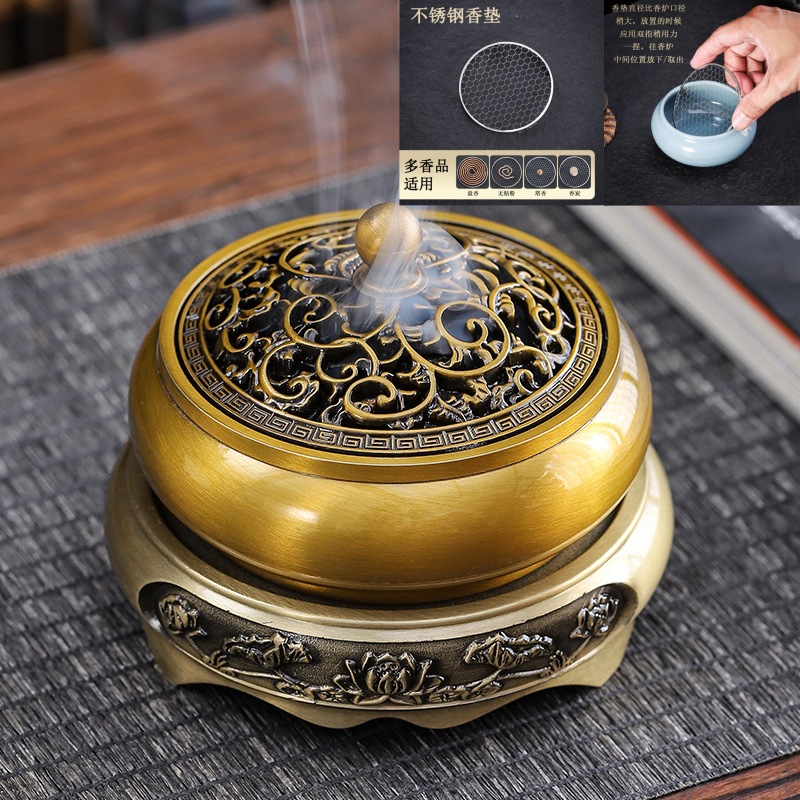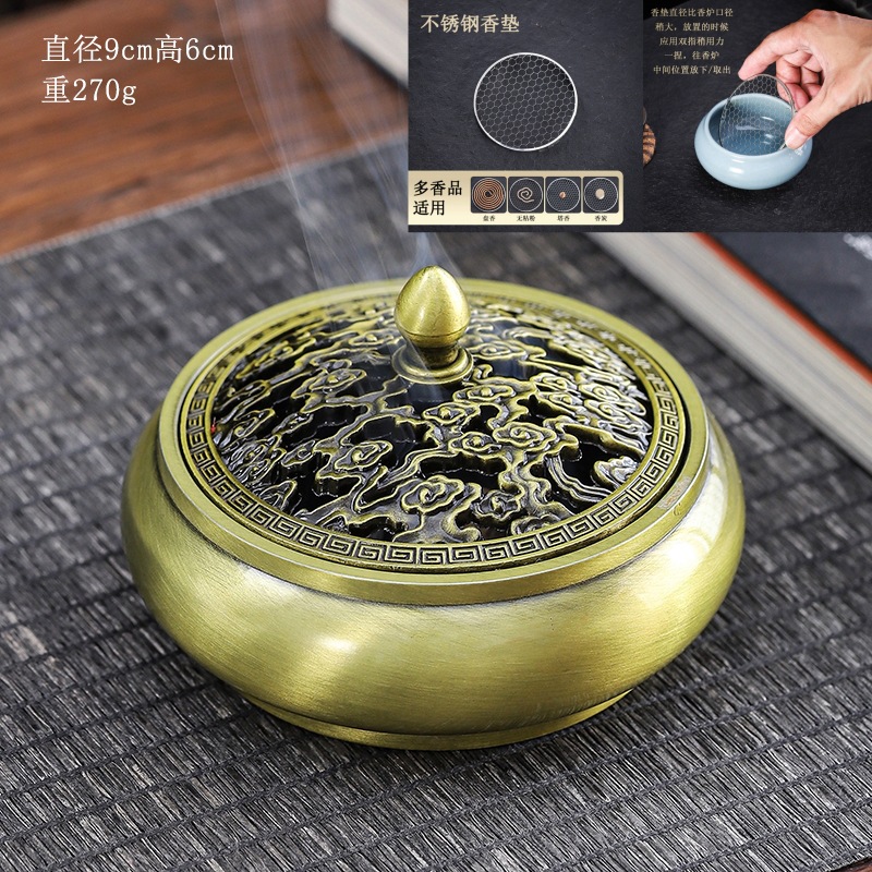 合金小号盘香炉家用仿古底座新款创意香道熏香炉酒店民宿跨境代发