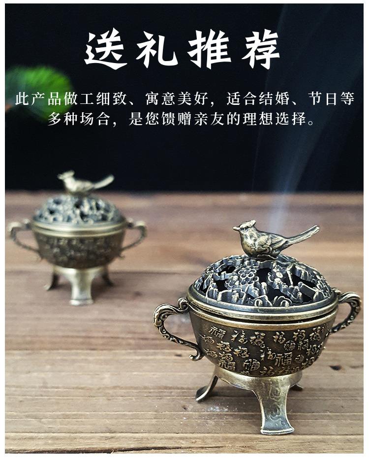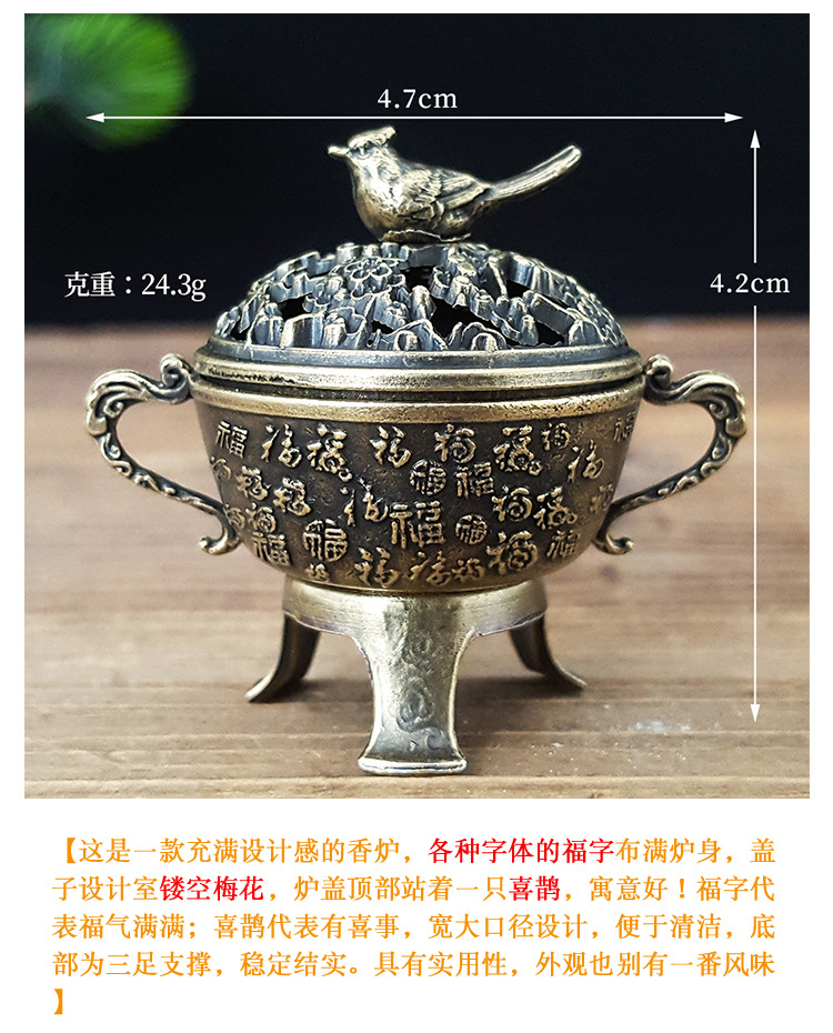 厂家直销创意三鼎福到喜到香炉 香薰炉香插摆件合金香道 家用客厅