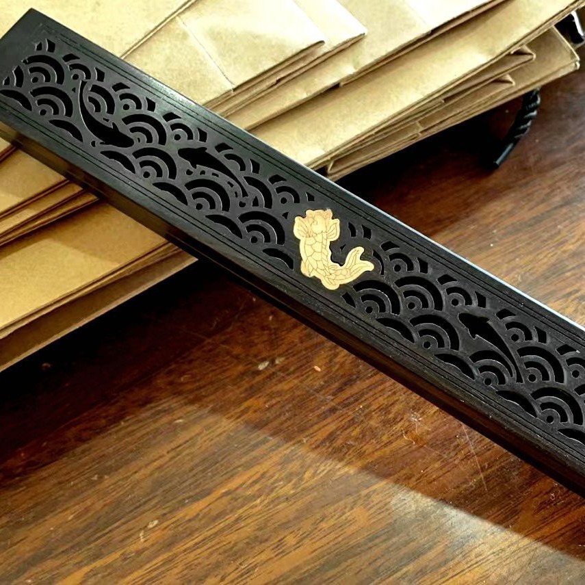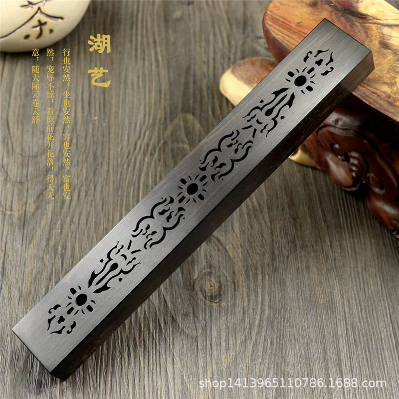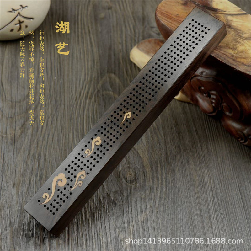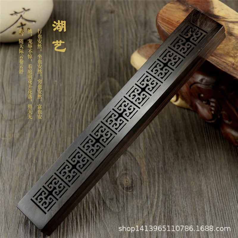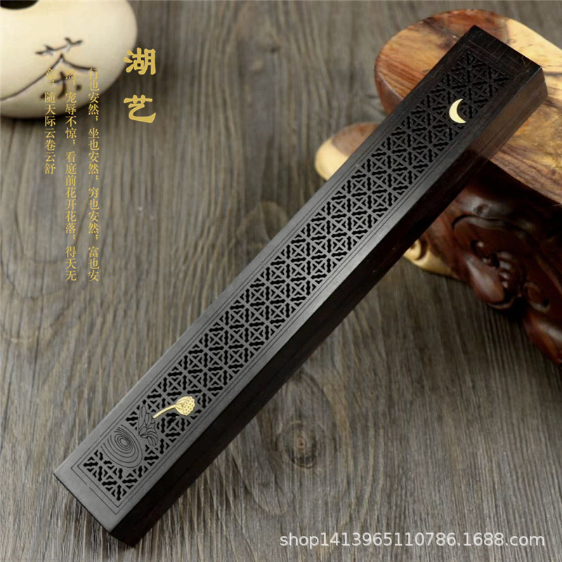 湖艺 黑檀木祥云盒黄杨木镶嵌铜钱回文香盒香炉整料挖制 批发