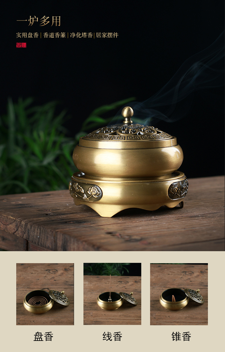 黄铜香炉家用盘香炉室内多用合金香炉线香炉酒店香炉香插香炉批发