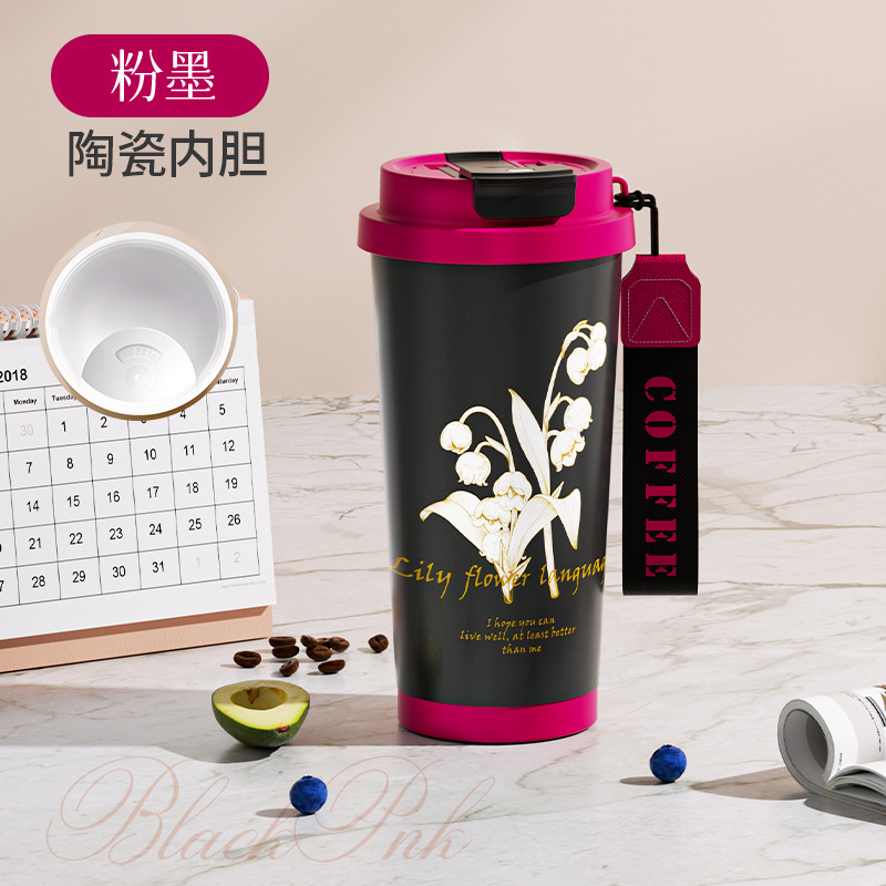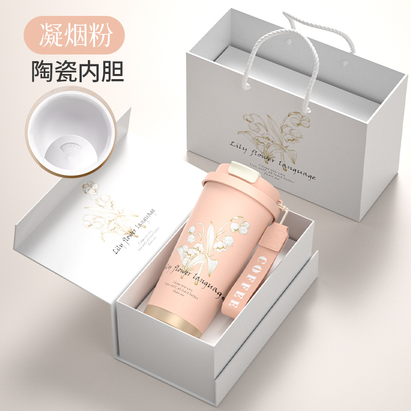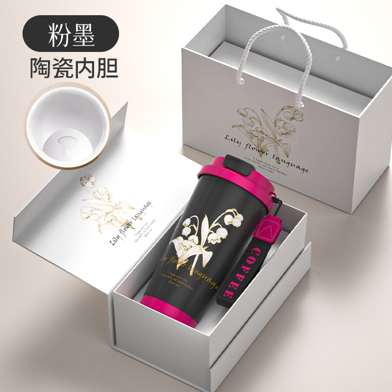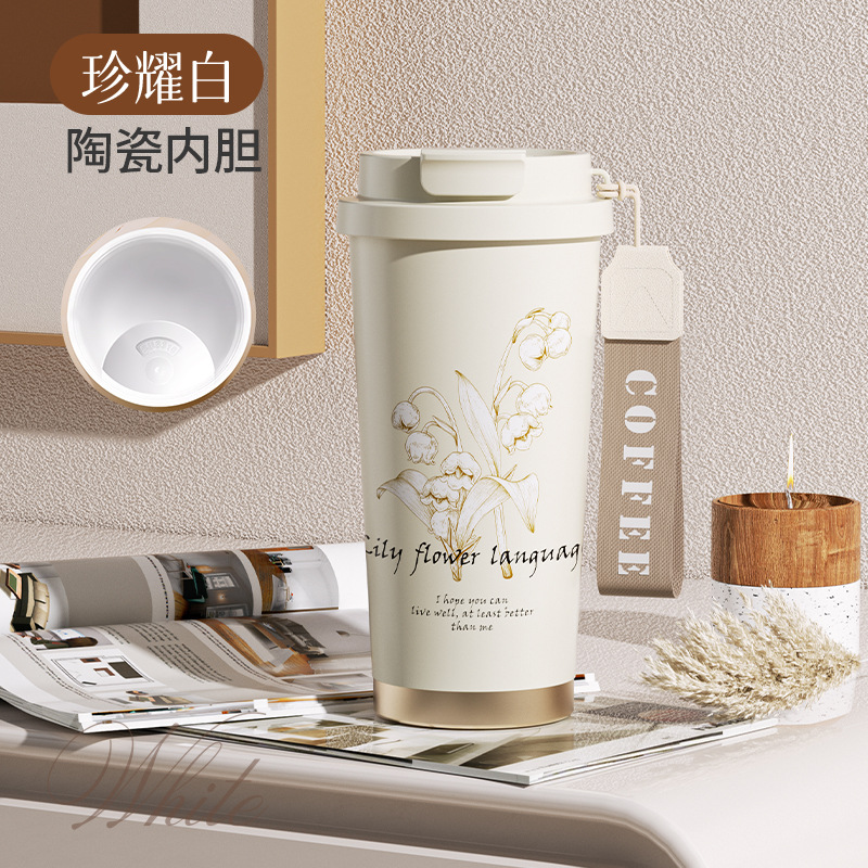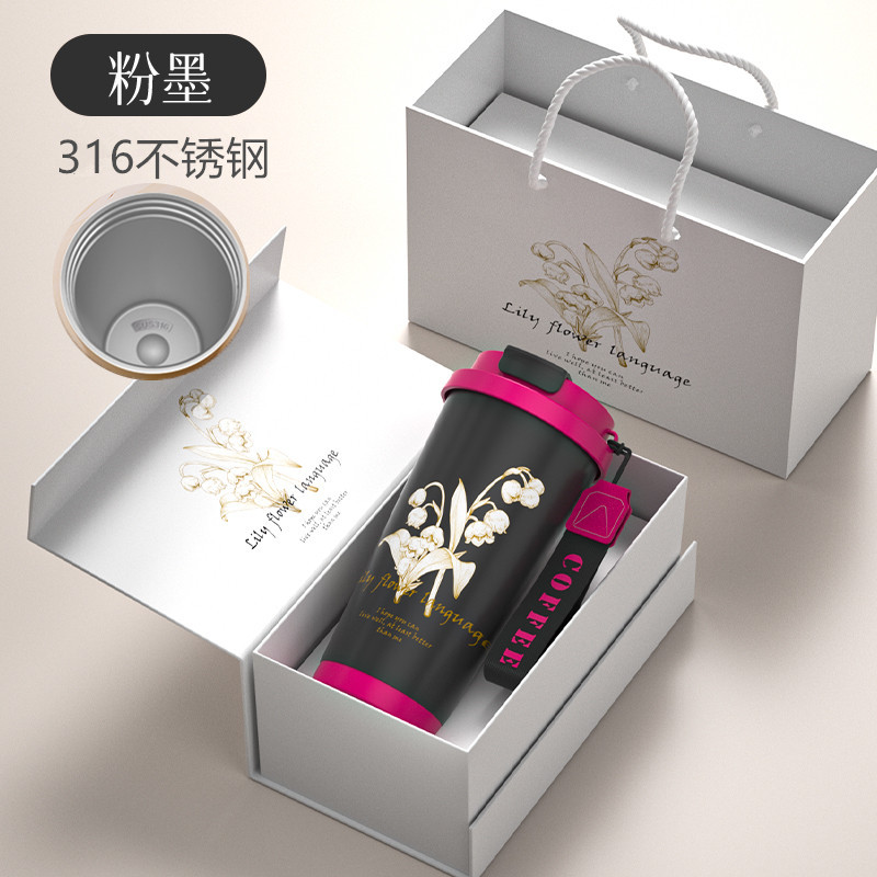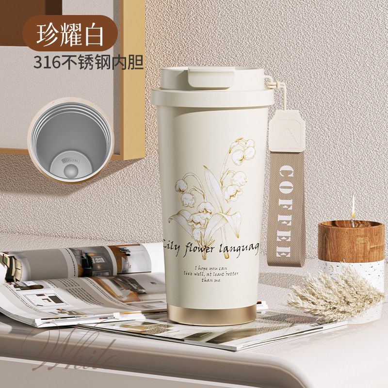 新款高颜值铃兰花保温杯316不锈钢保温咖啡杯男女同款双饮水杯