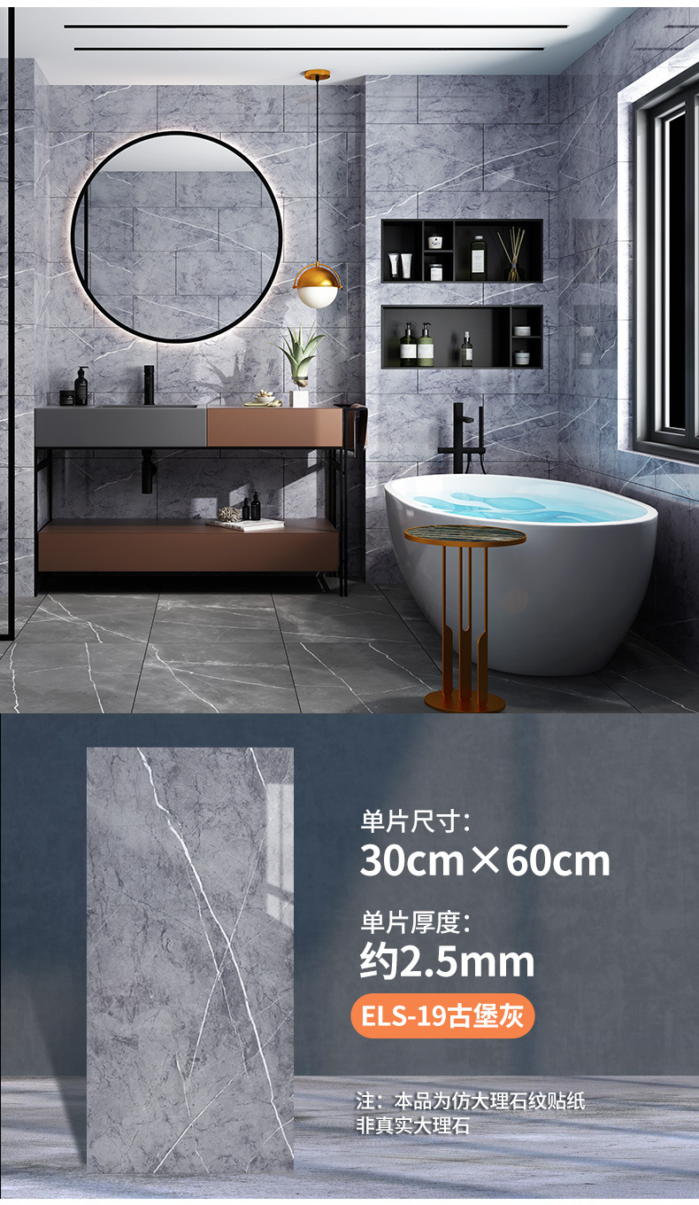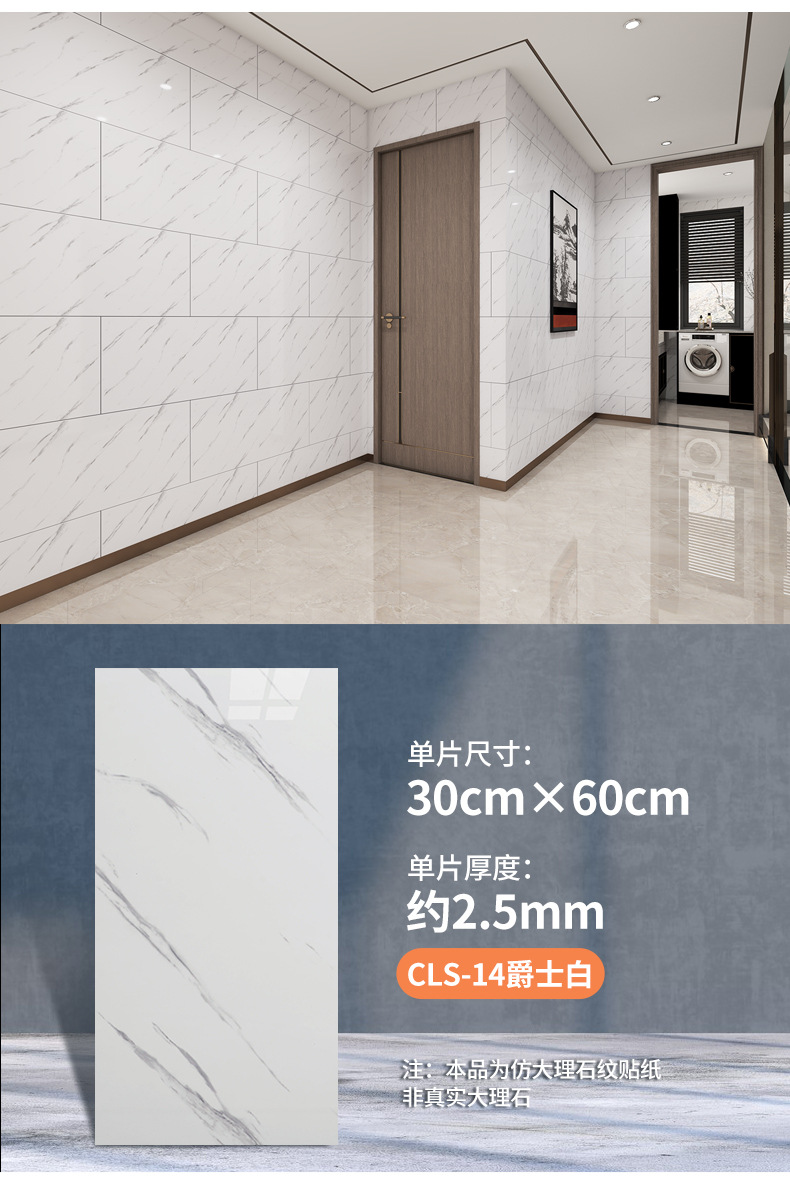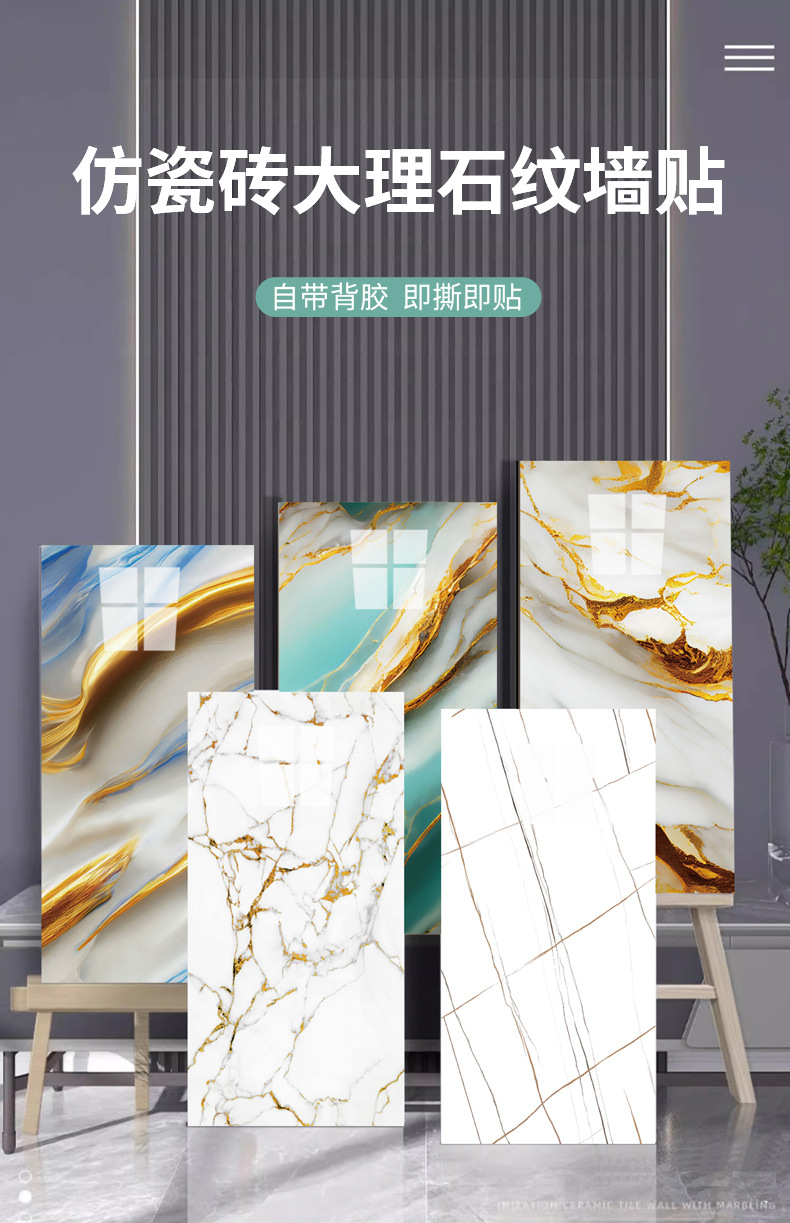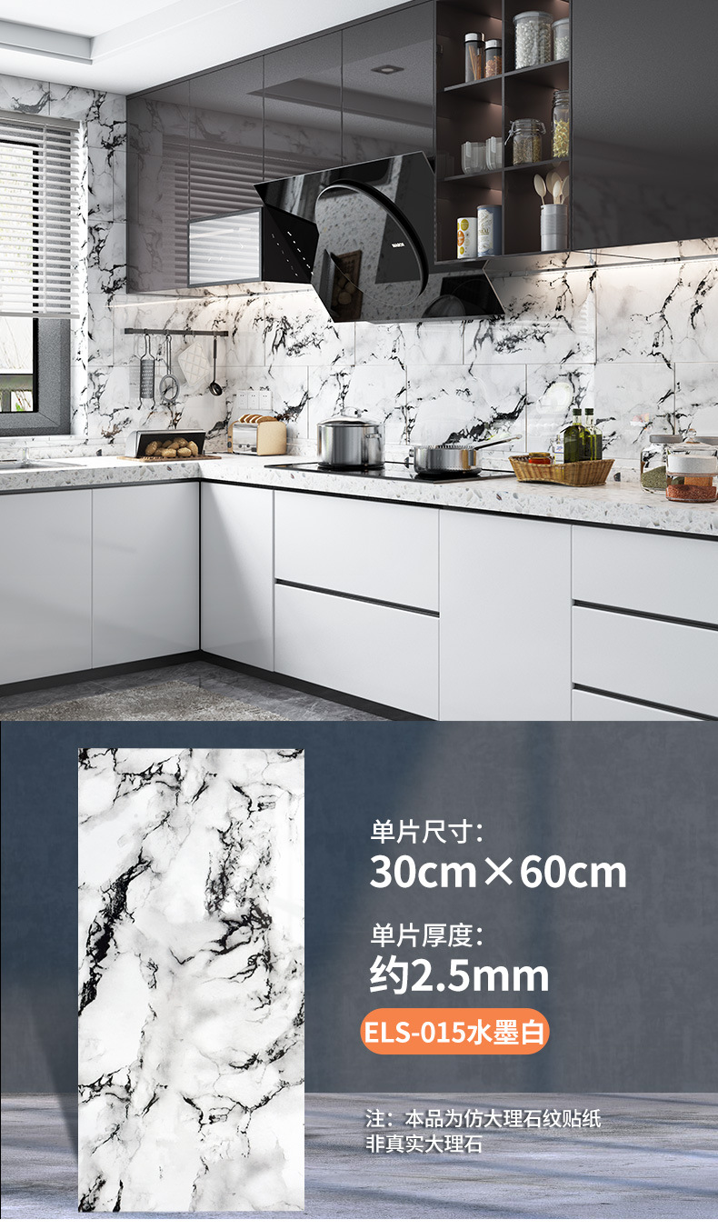 外贸跨境批发仿瓷砖大理石墙贴自粘防水厨房卫生间背景装饰墙壁纸