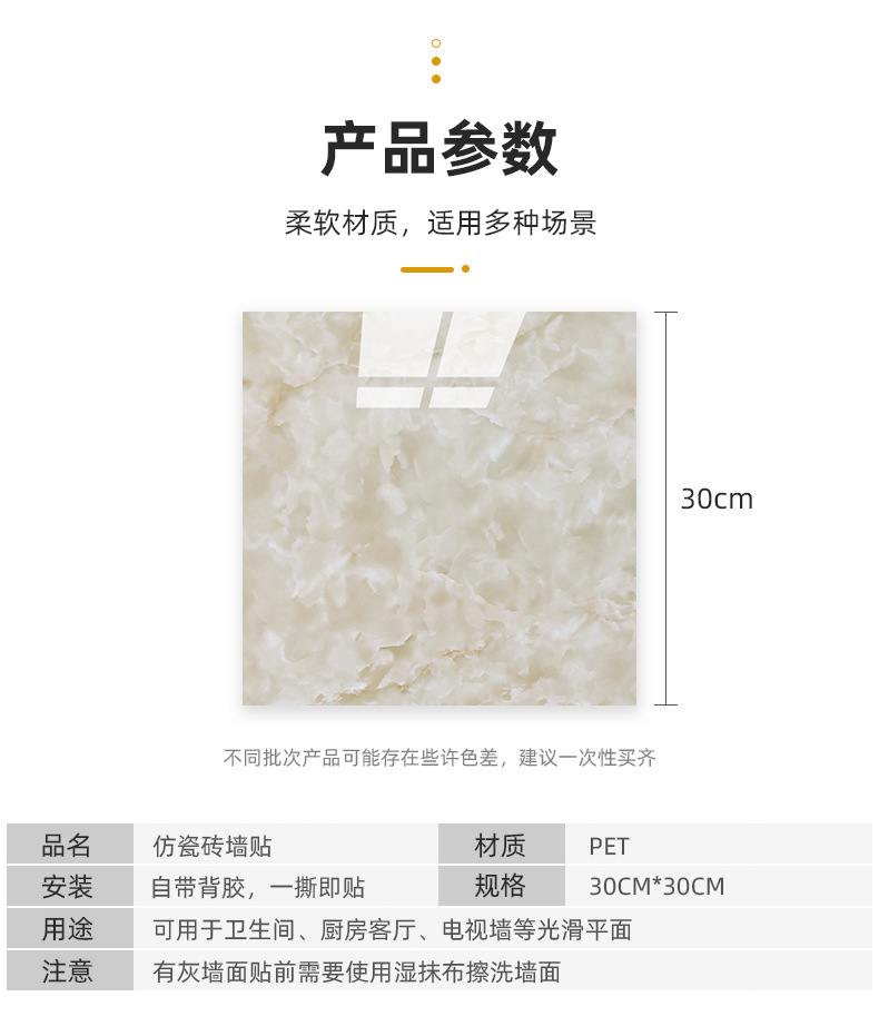 墙纸自粘仿瓷砖墙贴卫生间翻新地板贴厨房墙面防水防潮遮丑贴批发